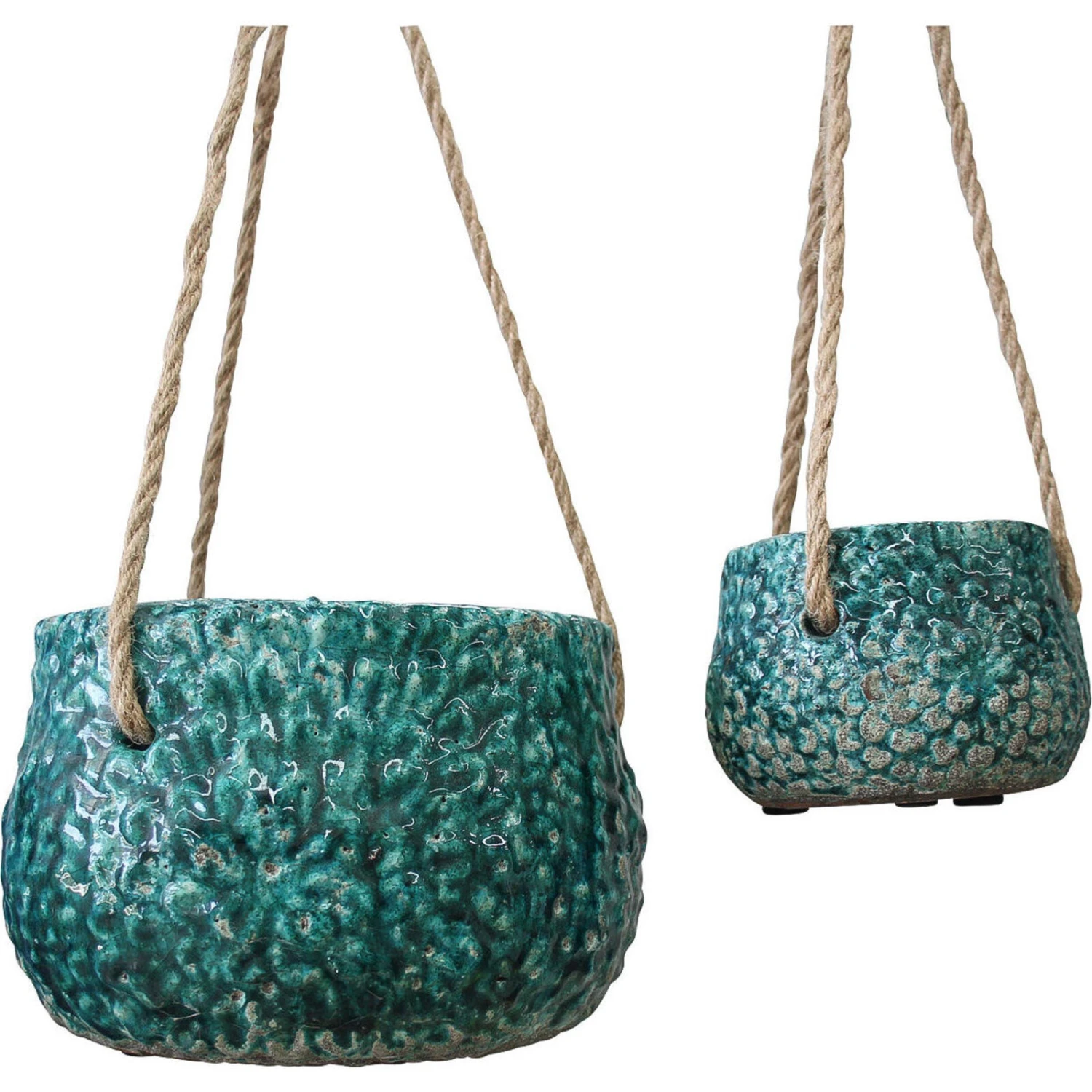 Elevate your indoor or outdoor decor with the Hanging Pot S/2 Flower Teal set, crafted from robust terracotta and showcasing a radiant teal finish that brings a burst of colour to any space. The duo includes a larger pot with dimensions of 20x20x13cm and a smaller sibling measuring 11.5×11.5×8.5cm, both complete with sturdy hangers for easy display. Retailers, these eye-catching pots offer an excellent opportunity to attract customers seeking to add a touch of artisanal charm and vibrant hues to their plant collection.