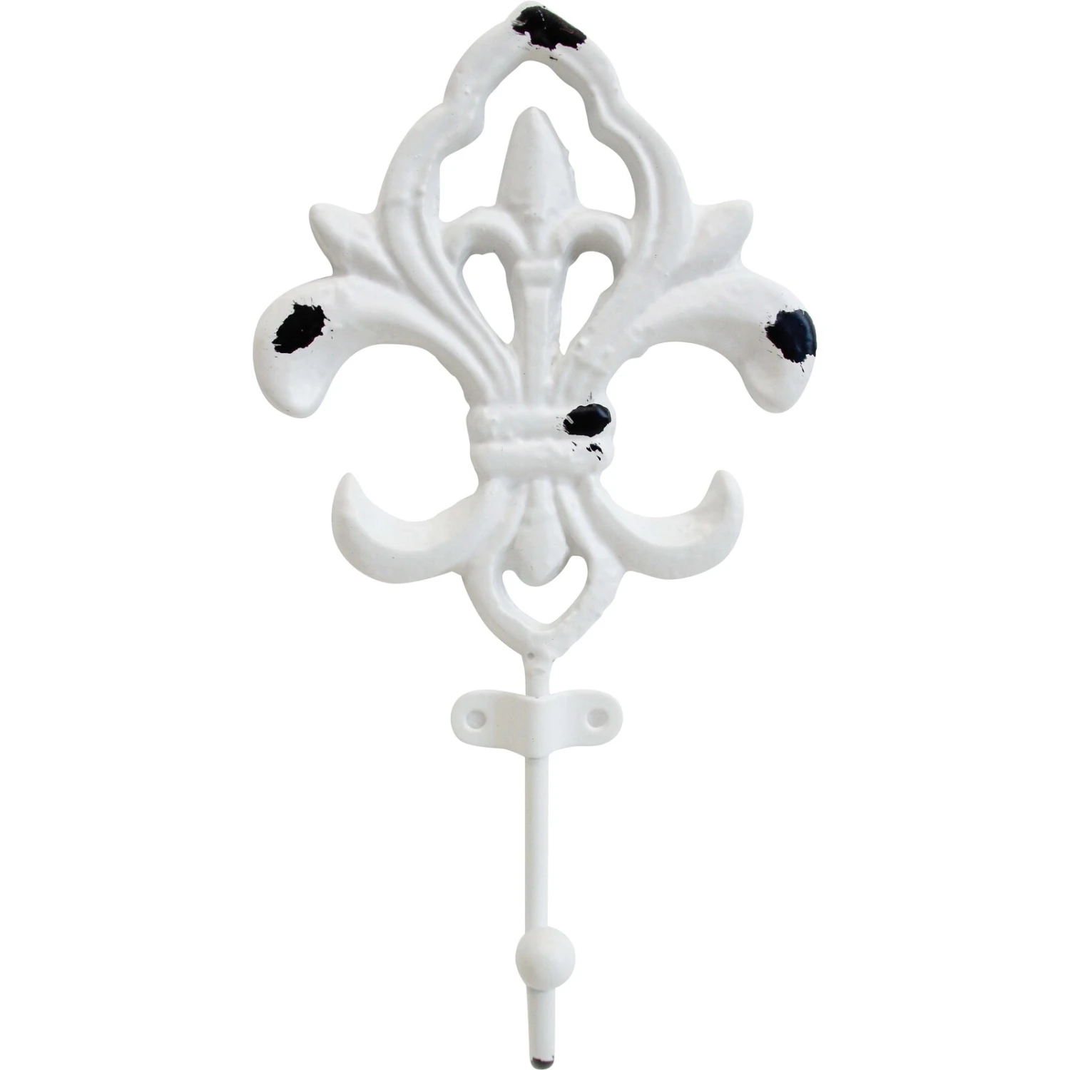 A rustic distress metal antique finish floral hook that has multiple utilities indoors as well as outdoors.