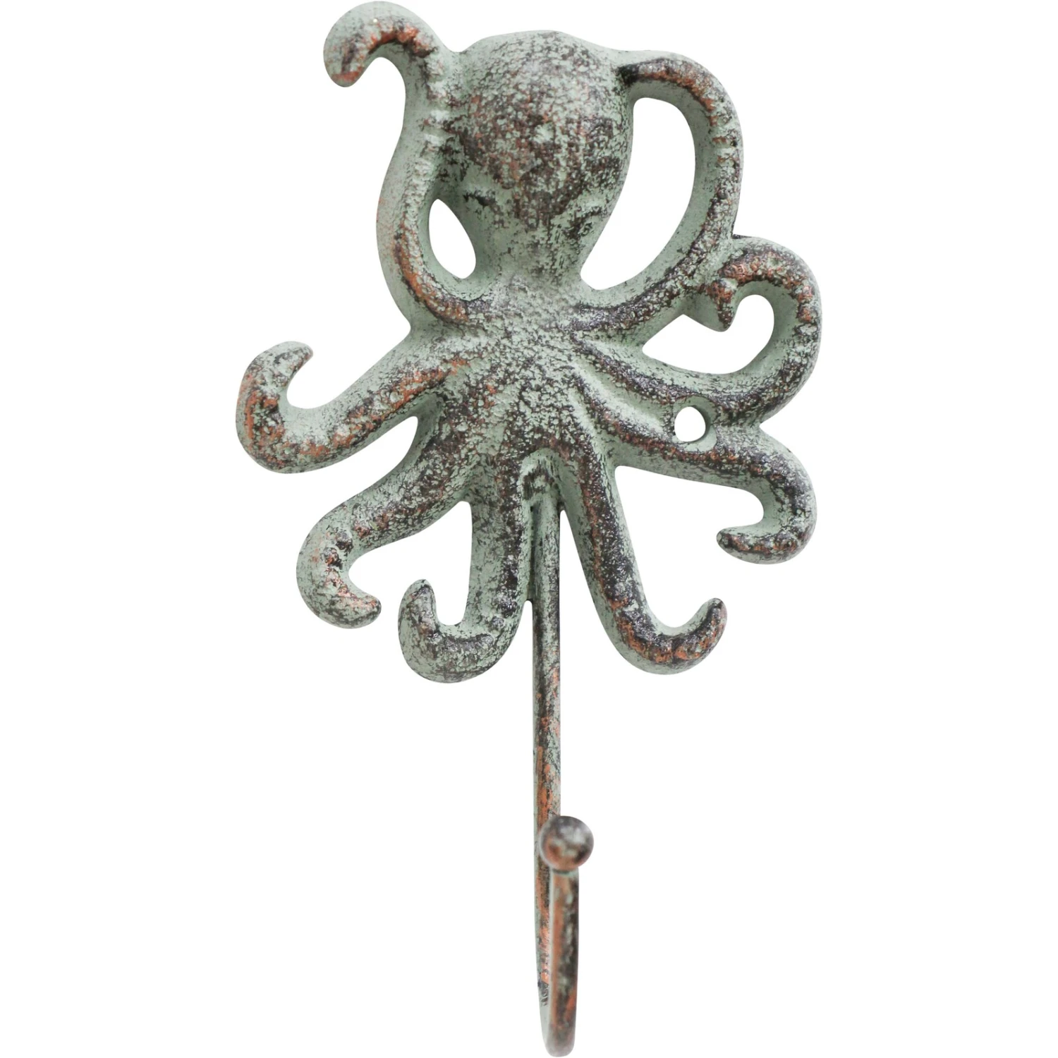 This charming Hook Octopus Antique is a stylish and practical addition to any home or commercial space. Crafted from durable cast iron in a size of 8.5x5x14.5cm, it boasts a rustic finish that adds a touch of vintage elegance to any décor. With its unique octopus design, this hook is not only functional but also serves as an eye-catching decorative piece, making it a surefire conversation starter and a great way to attract customers looking for maritime-inspired or quirky items.