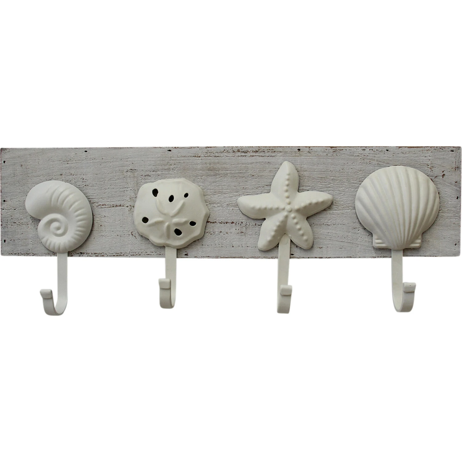 Coastal Hooks is a visually appealing beach themed home decor hallmarking coral ornament and nautical accent. Its classic design and distressed wood finish and a compartment of four hook outlets make it an attractive and serviceable hardware piece.