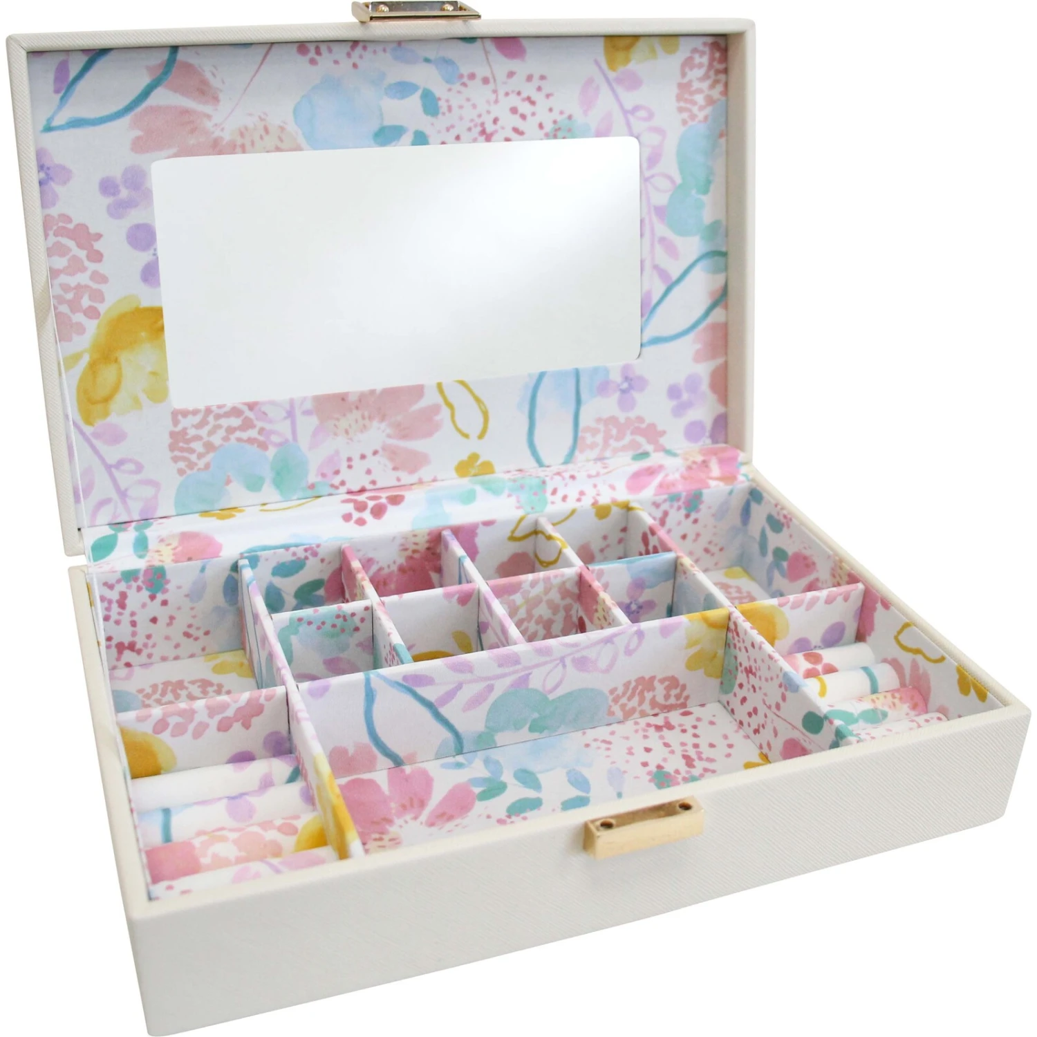 Discover the enchanting Jewellery Box Funfetti, a whimsical storage solution sized at 25.5×17.5x7cm that brings both charm and functionality to your accessory collection. Crafted from durable MDF and adorned with a playful polyester fabric interior, this box features a PU exterior and a clear glass panel to beautifully display your treasures. Perfect for adding a touch of fun and organization, this colourful addition is sure to captivate shoppers looking for a stylish way to keep their jewels safe and sound.