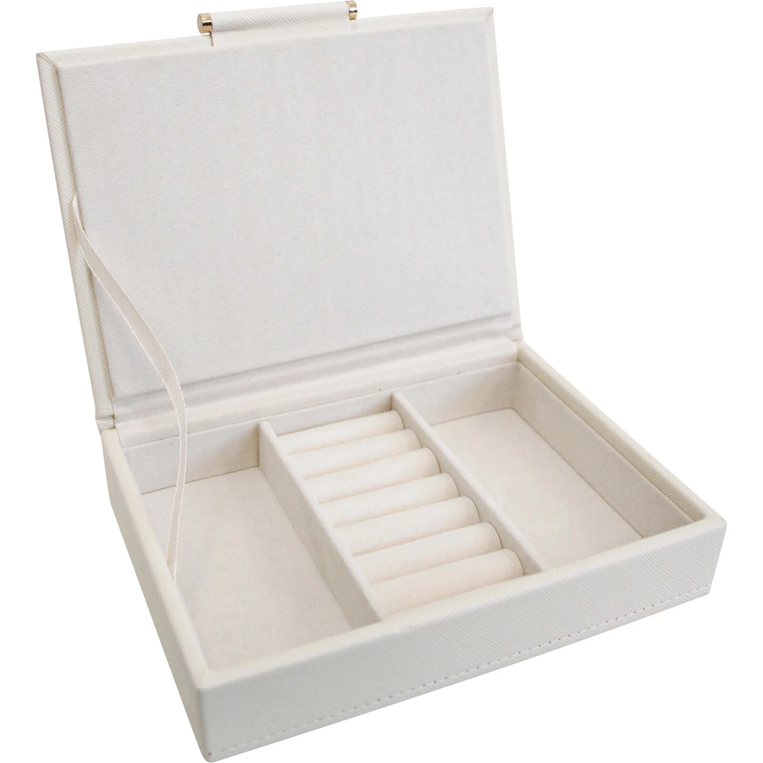 Elevate your jewelry display with the Jewellery Box Low Ivory, a timeless piece designed to organize and showcase your finest accessories. Crafted from durable MDF and upholstered in a luxurious blend of polyester and PU, this elegant 17.5×13.5x4cm box features a chic neutral hue that complements any decor. Retailers will find its sophisticated design and functional appeal a hit with customers looking for a perfect combination of style and storage for their treasures.