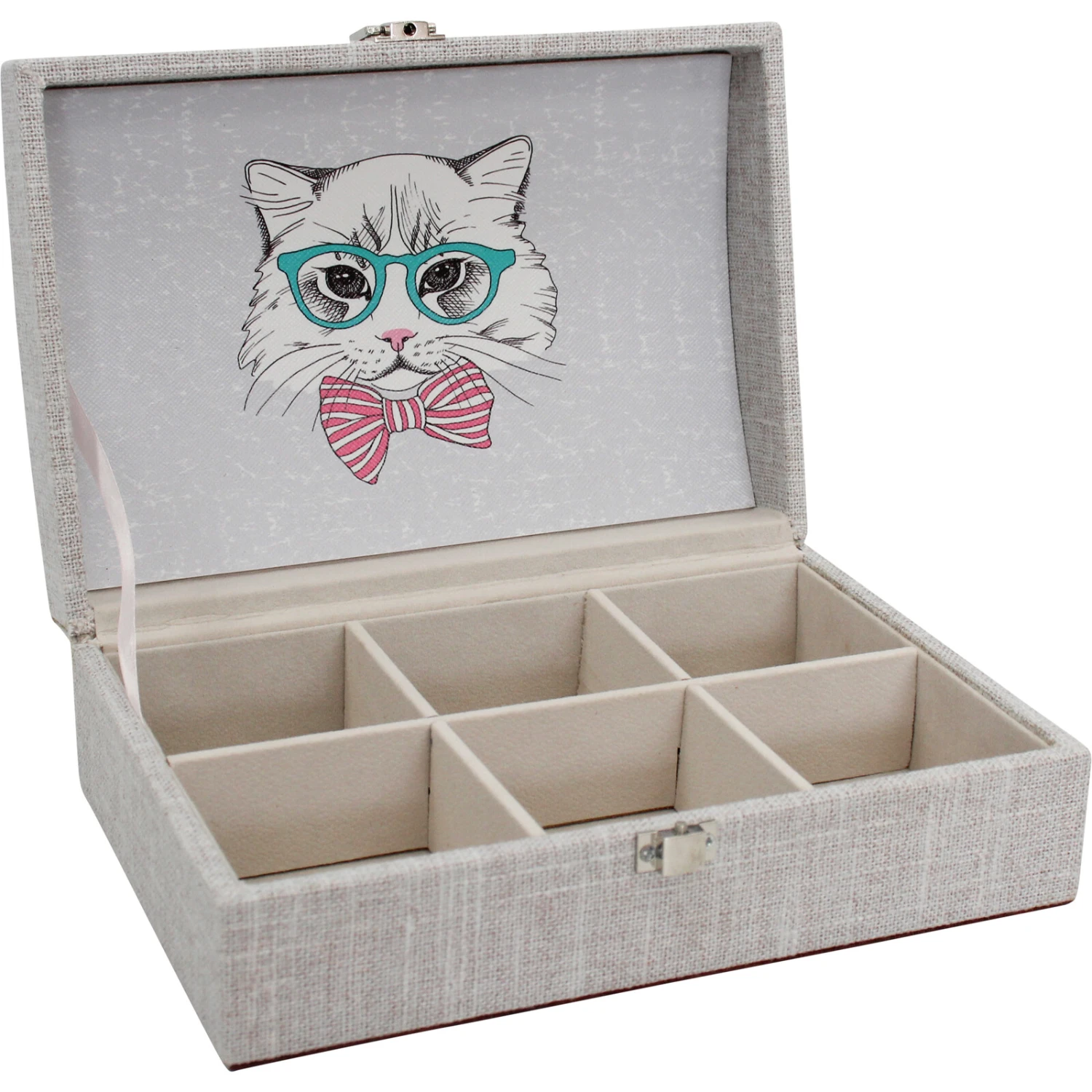 Living up to its name the Box Sophisticated features the feline charm of a cat that adorns its outer lid as well as one inside – thus giving you a pair of eyes keeping an eye over your little treasures. Made from MDF, this charming case has six tiny compartments meant to keep things sorted and easy to reach for. Say goodbye to your woes of keeping your tiny treasures well organized with this adorable addition to your dresser.