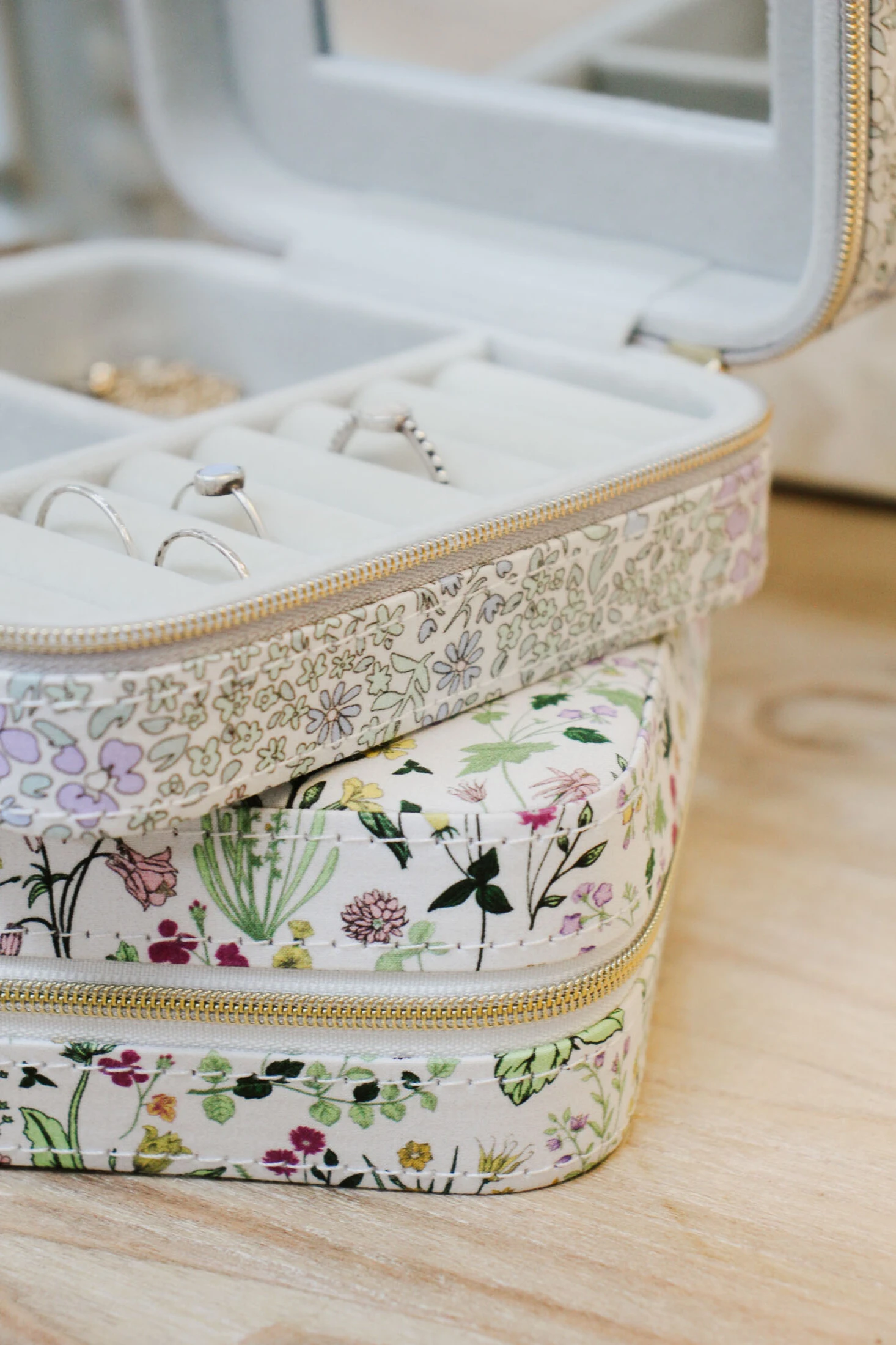 Elevate your accessory display with the Jewellery Cube Floral, a compact and stylish storage solution measuring 13x14x5 cm. This charming cube, adorned with a delicate floral pattern, is crafted from durable MDF and lined with soft polyester and linen, ensuring your precious items are nestled safely. Retailers will find this elegant organizer an irresistible offering for consumers seeking a blend of functionality and aesthetic appeal in their jewelry storage options.