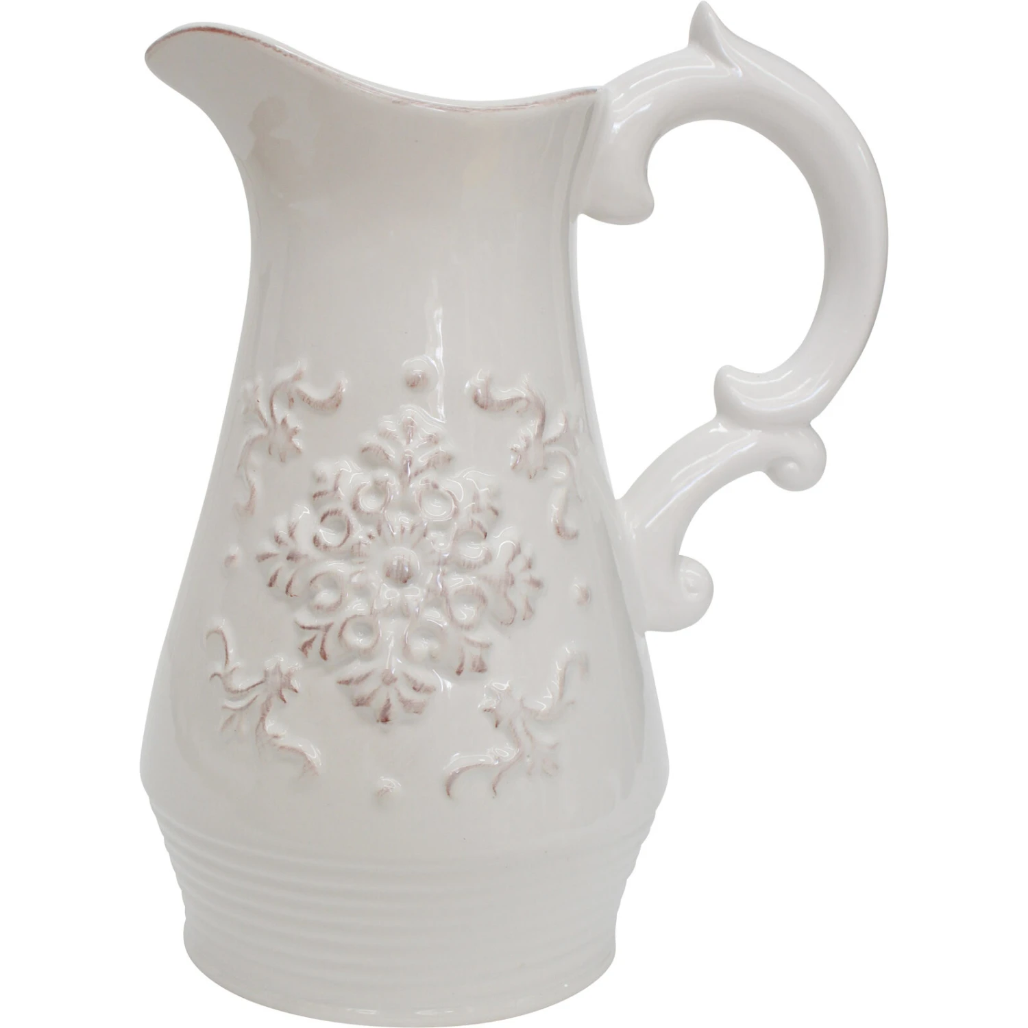 Experience the elegance of the Jug Ornate, a timeless ceramic masterpiece designed to elevate any dining experience. Measuring a convenient 17x10x22cm, this pristine white pitcher features intricate embossed patterns that exude a sophisticated charm. Retailers will find that its classic appeal and durable construction make it a coveted item among consumers seeking a blend of functionality and decorative flair.