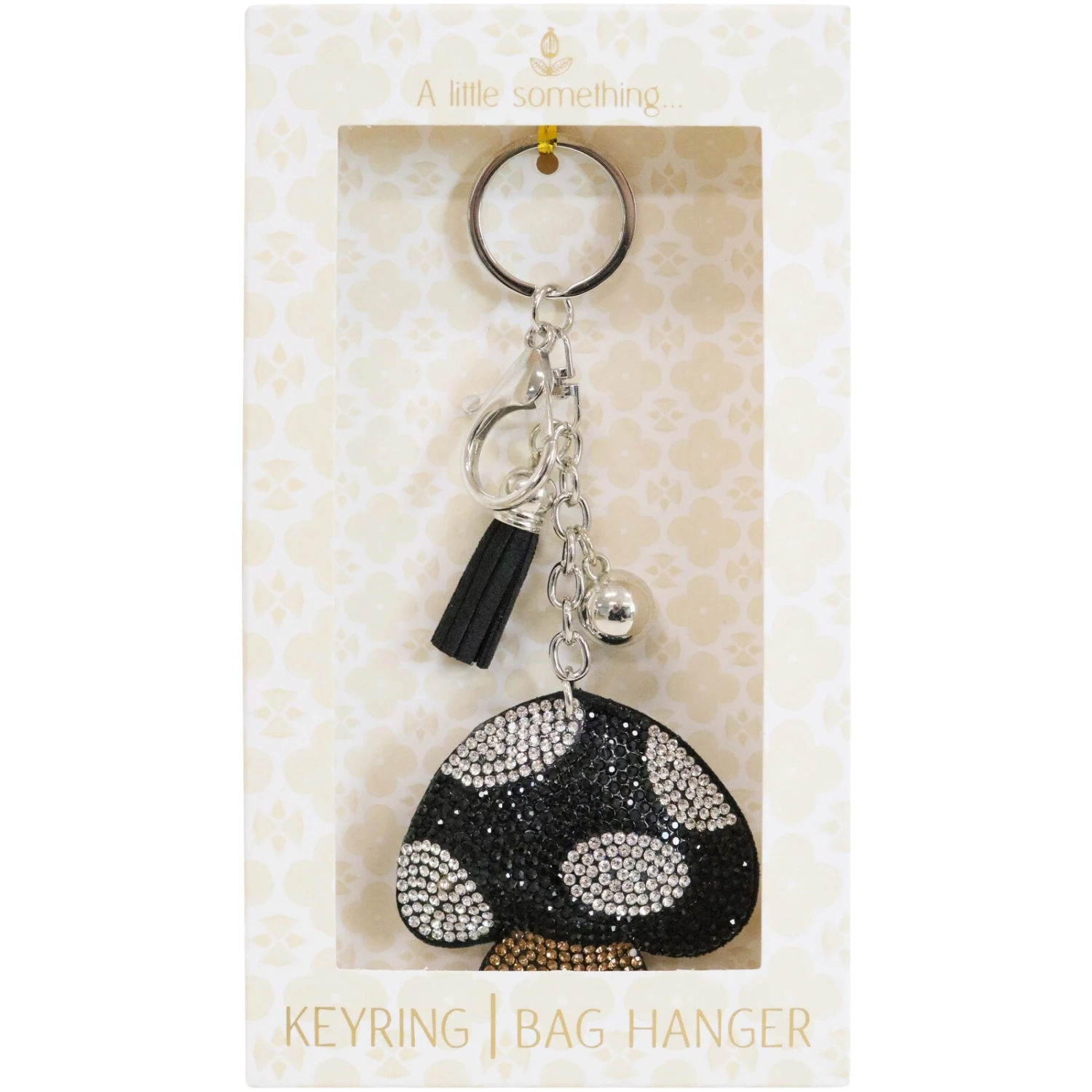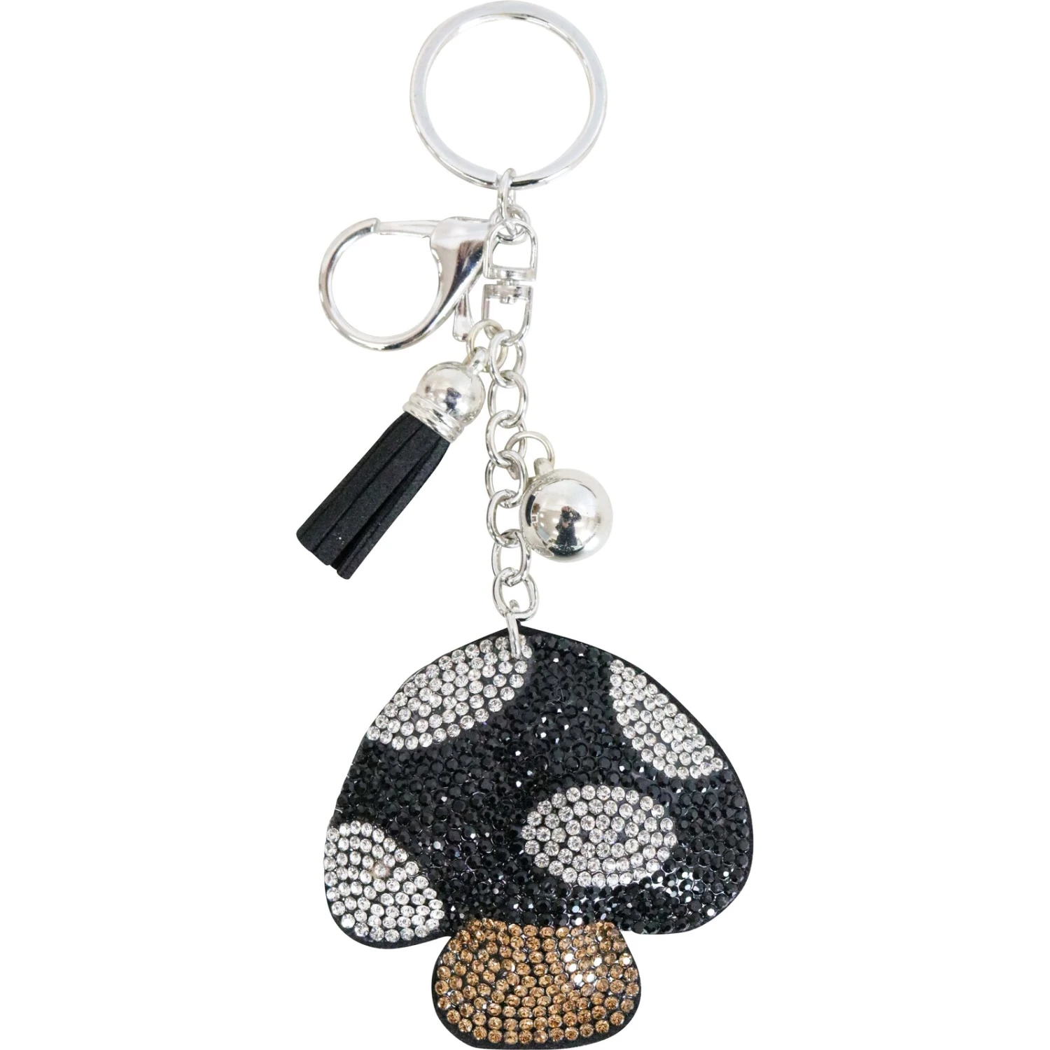 Dazzle your customers with the Keyring/Bag Hanger Mushroom, a sparkling accessory measuring 6x15x1 cm. This captivating item features a shimmering mushroom embellished with PU, polyester, and metal details in a chic black tone, making it an instant eye-catcher. Retailers will find this keyring/bag hanger an irresistible add-on that combines practicality with a touch of glamour, appealing to shoppers who love to personalize their belongings with stylish flair.