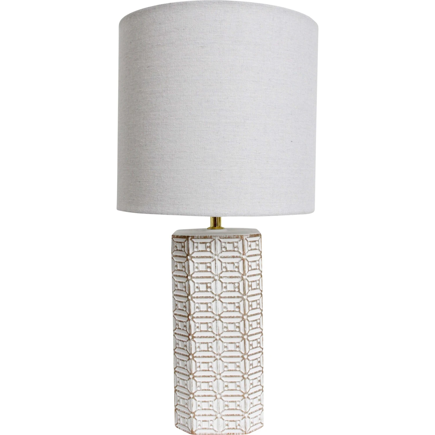 Elevate your store’s home decor collection with the Lamp Alegro, a tasteful blend of utility and style. This lamp features a chic ceramic base with a geometric pattern, paired with a classic linen shade, measuring 26x26x53cm. Its neutral colour palette and premium materials make it an elegant choice for customers looking to add a touch of sophistication to any room.