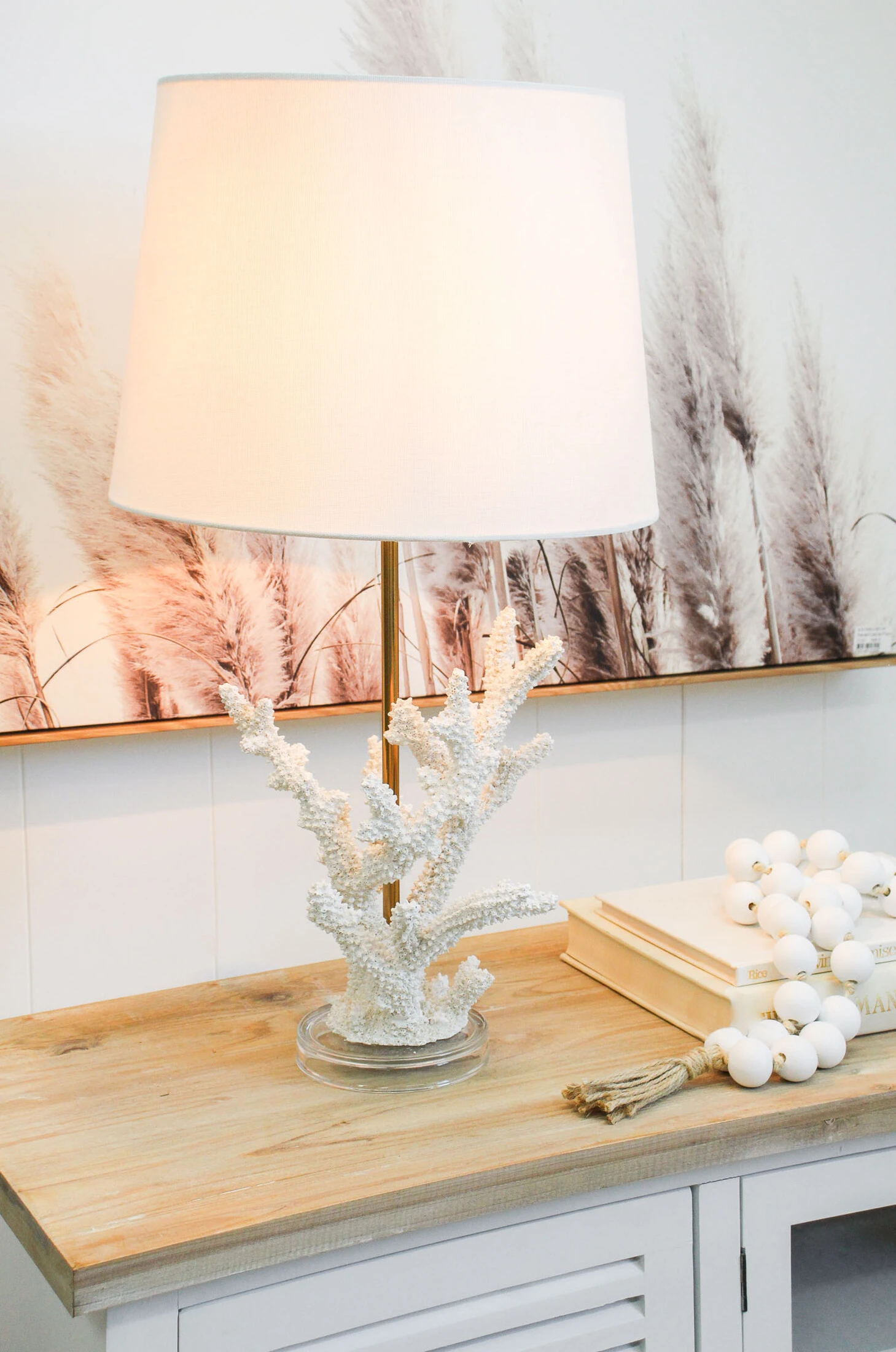 Discover the serene beauty of the ocean with the Lamp Coral Reef, a stunning piece that melds nature-inspired design with practical illumination. This elegant lamp features a base that measures 22x22cm and a total height of 62cm, crafted from durable resin to mimic the intricate details of coral, paired with a sleek metal stand and topped with a classic linen shade. Retailers will find that its captivating coral motif and calming white colour make it a sought-after item for consumers looking to add a touch of coastal charm to their home decor.
