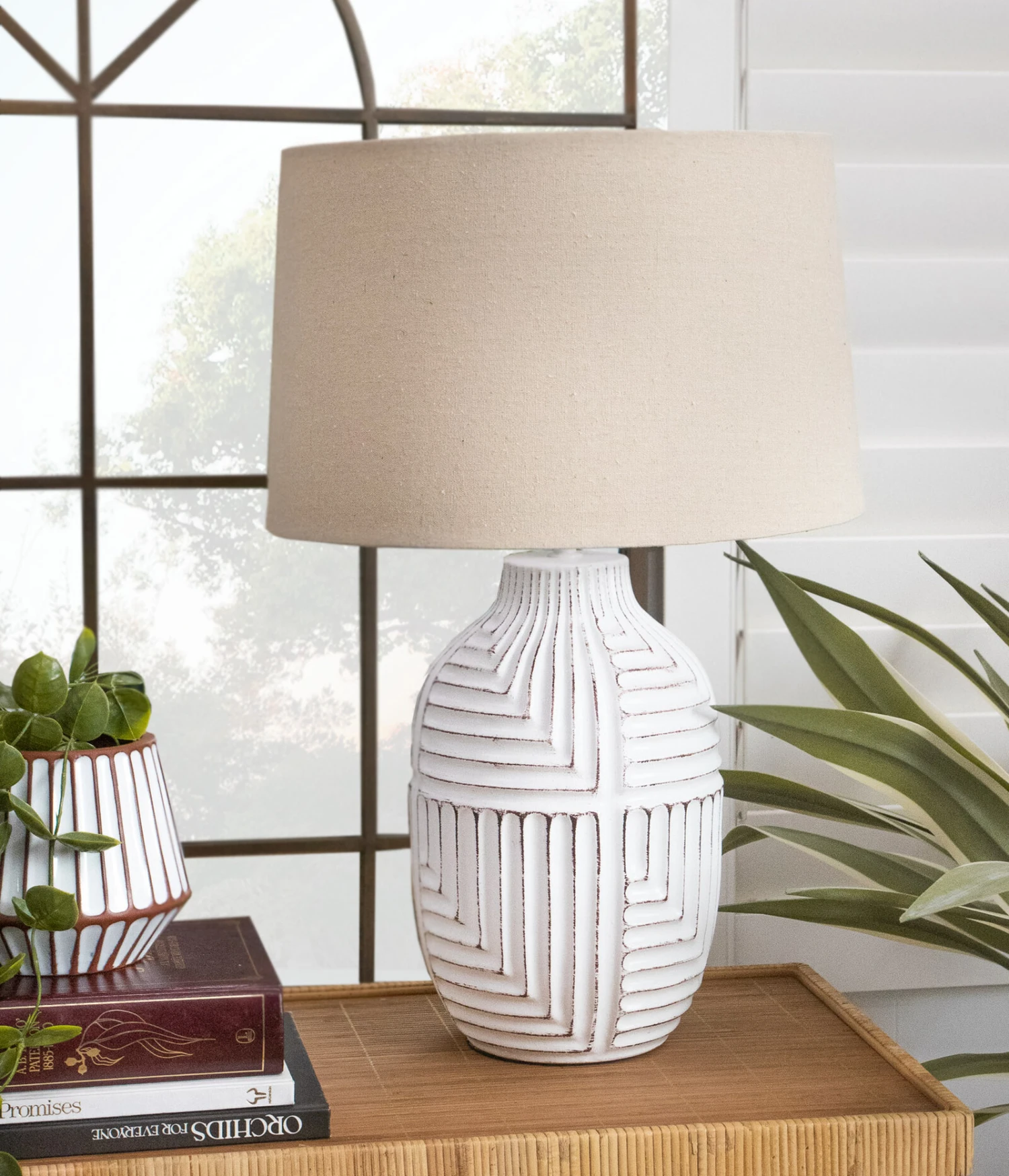 Enhance your home decor with the sophisticated charm of the Lamp Kuba Lrg, a fine fusion of functionality and elegance. Boasting a robust ceramic base with a distinctive textured pattern, paired with a beautifully complementary linen shade, this lamp stands at an impressive 40x40x61cm size, making it an ideal statement piece for any room. Retailers will find that its serene colour palette and durable materials not only draw in customers seeking quality illumination but also those looking to add a touch of artistic flair to their living spaces.