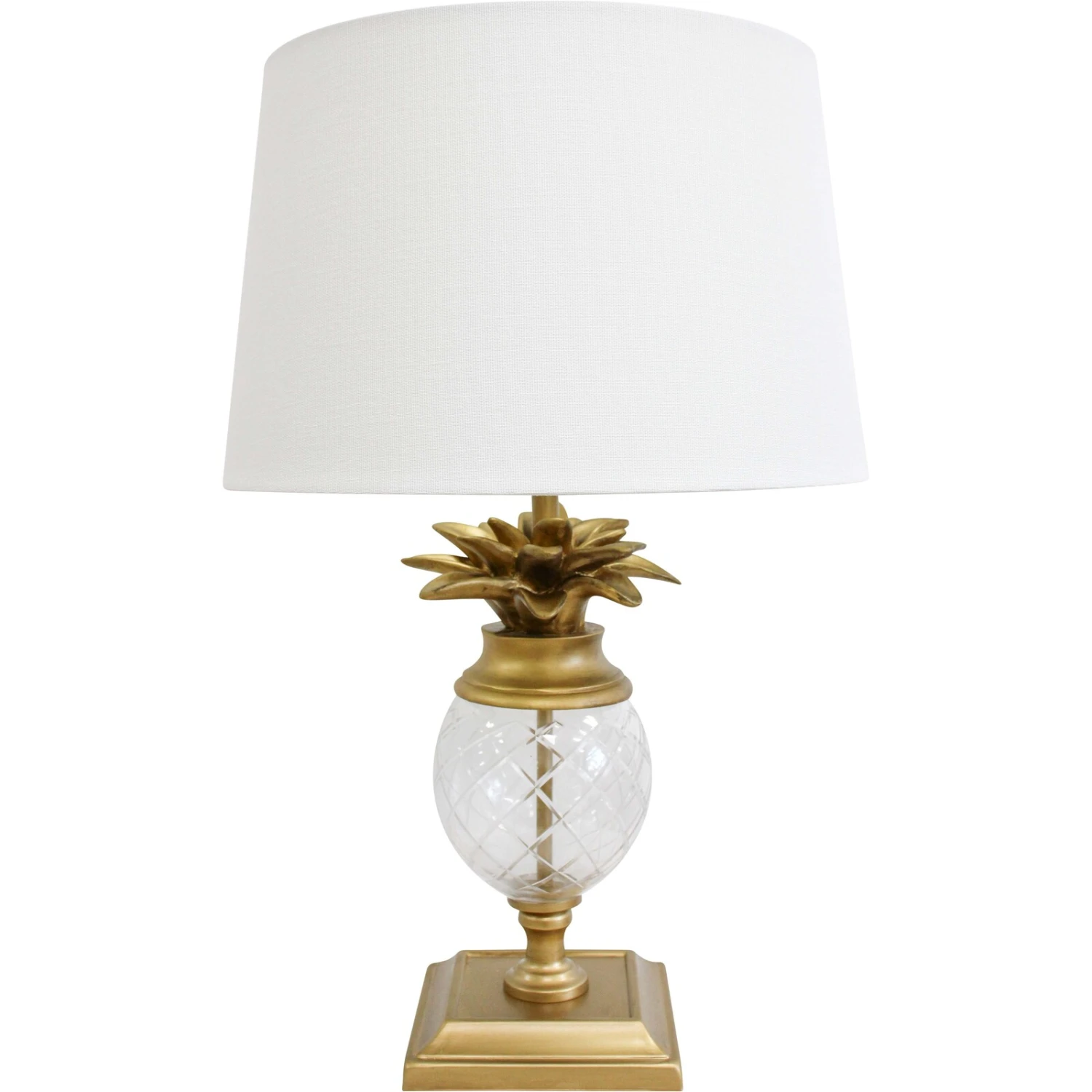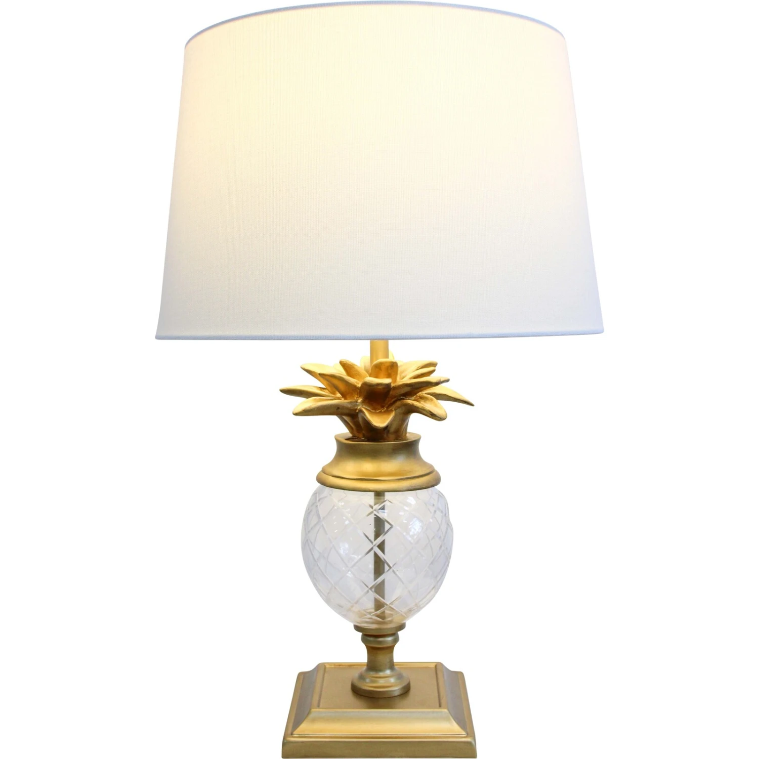Elevate your home decor with the Lamp Pineapple Glass, a charming fusion of elegance and playful design. Featuring a base of 16x16cm with a total height of 56cm, this lamp showcases a stunning pineapple motif crafted from glass and metal, topped with a tasteful linen shade. Retailers will find that the blend of classic materials with a whimsical shape makes this lamp a compelling addition that can draw the attention of customers looking to add a touch of luxury and fun to their spaces.