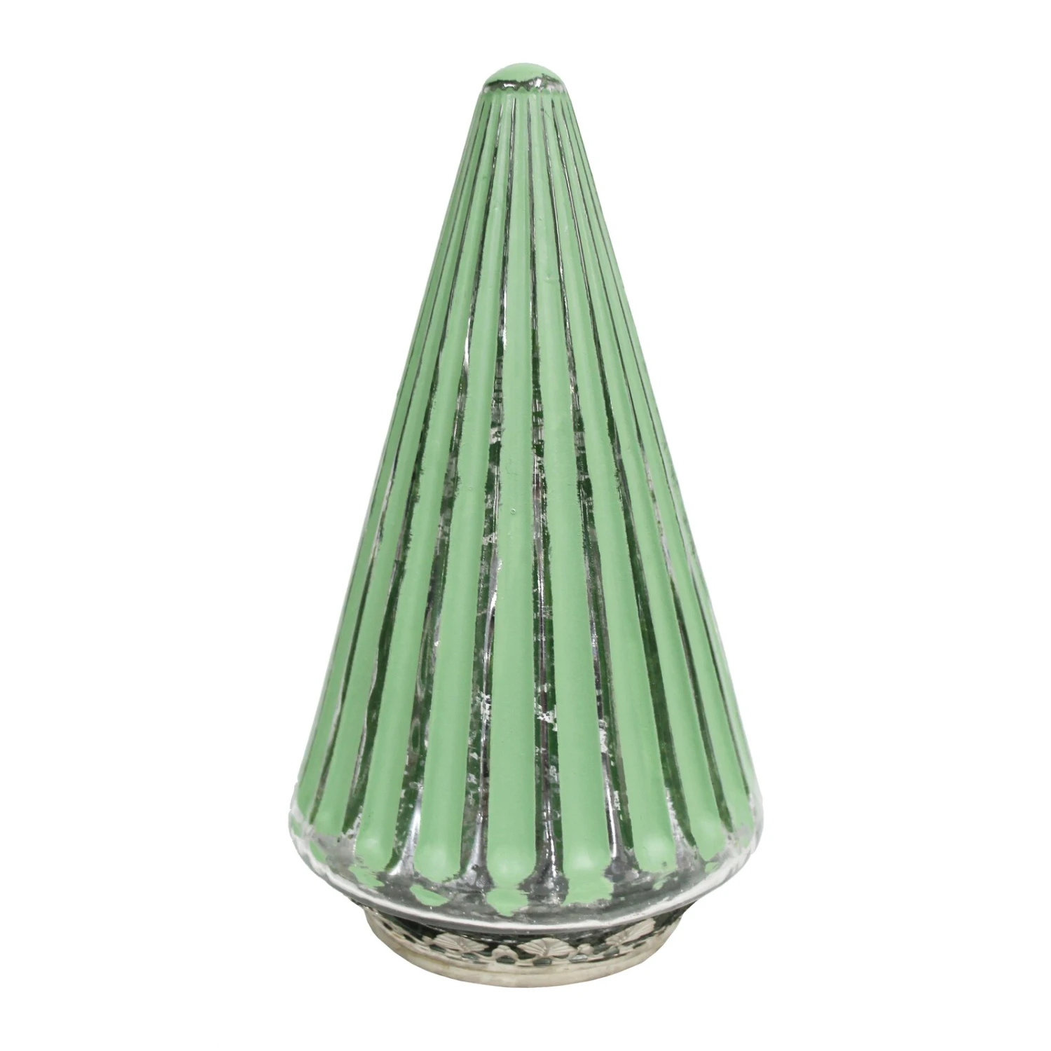 Conical shaped and chicly ornamented, the Lantern LED Pine Tree Spearmint is a decoratively charming portable sized LED illuminative lamp. Made in a vertically inclined dimension, though it is tall with regards to its other body measurement, it is nonetheless, perfect for use as a table decorative and illuminative ornament. It is made through the use and combination of premium quality glass and metal material.