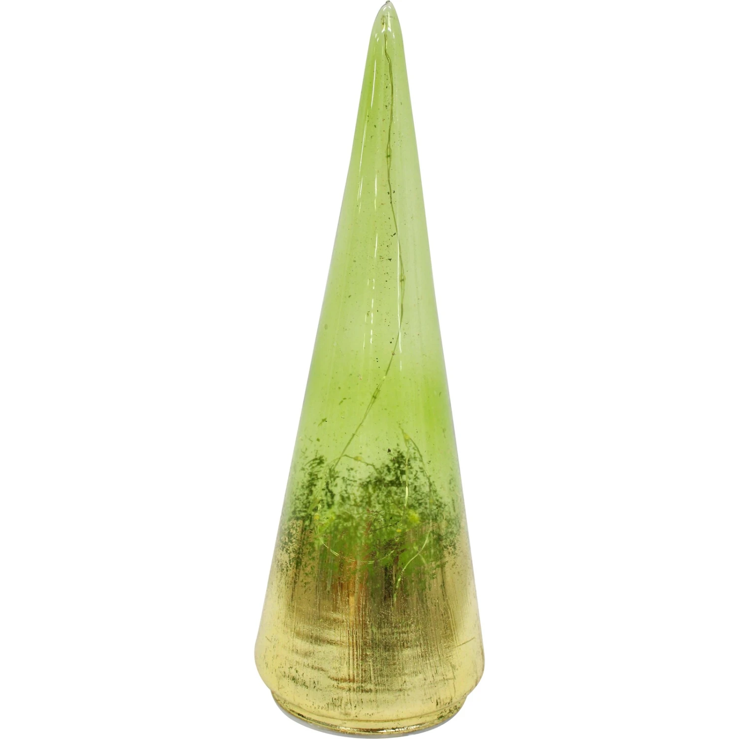 The subtle usage of green and gold adds to the beauty of this table top decorative piece. Crafted by experts-this glass made tree replicates the most loved symbol of the festive season, adding a unique tweak to its look by adding LED lights within its frame. Lights up brightly and adds just the right amounts of colour and brightness to spaces that need a touch of holiday fervor.