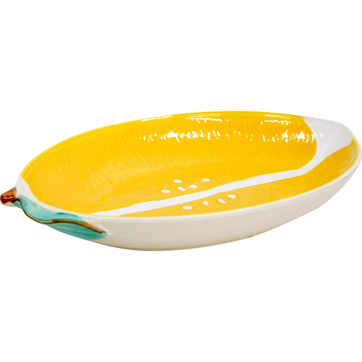 Add a zest of citrus charm to your table setting with the Lemon Platter, a delightfully vibrant serving piece measuring 32x21x5cm. Crafted from high-quality stoneware ceramic, this platter boasts a refreshing lemon colour that is sure to brighten any dining experience. Retailers will find that the combination of practicality and playful design makes this Lemon Platter an attractive purchase for customers looking to enhance their home entertainment or gift someone with a unique and functional piece of tableware.