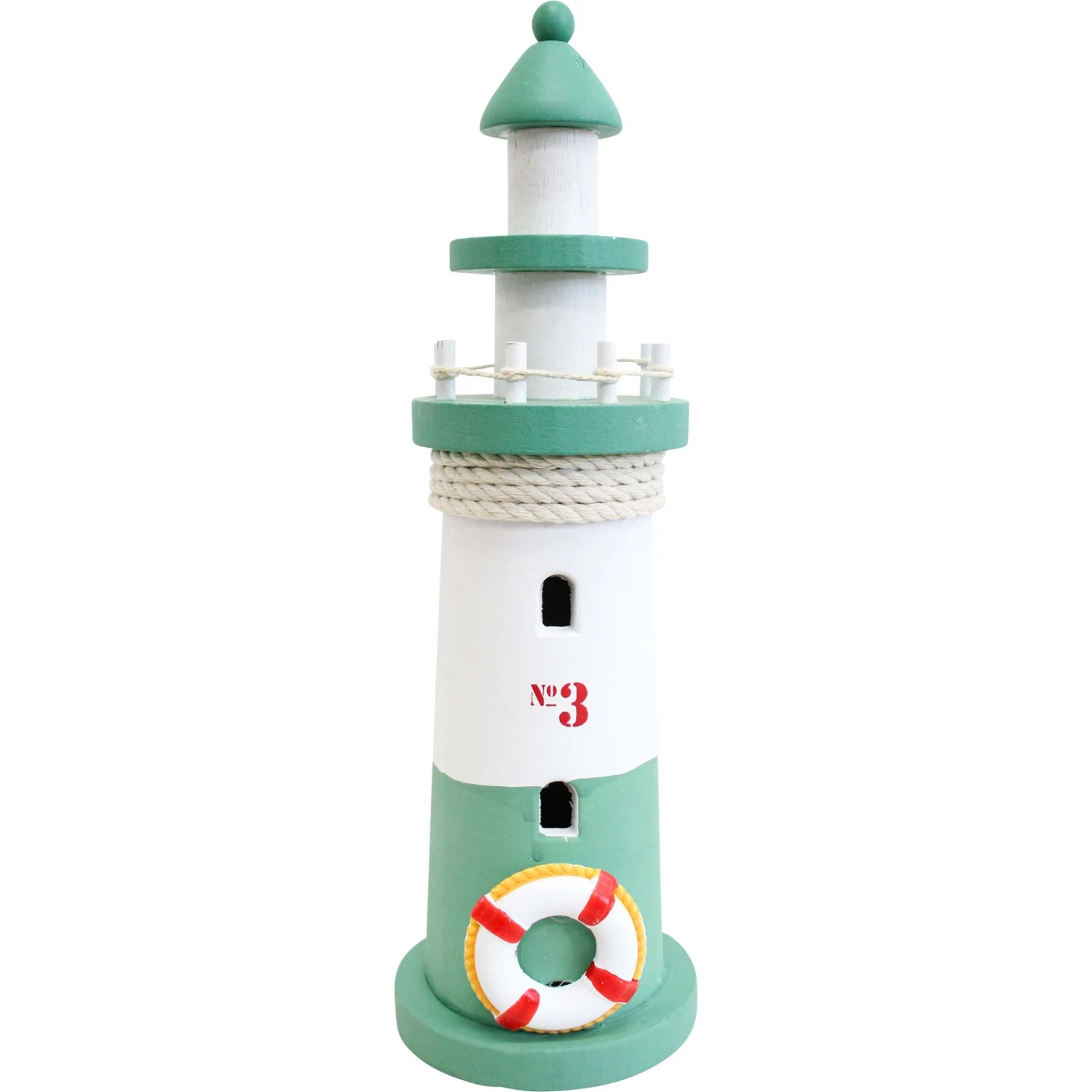The Lighthouse Med No.3 is a charming addition to any nautical-themed decor, crafted with care from MDF with dimensions of 8.5×8.5x28cm. Its iconic white and green colour scheme, complete with a lifebuoy accent, invites a sense of seaside serenity into a home or office. Retailers will find this delightful lighthouse model a captivating piece that’s likely to draw the attention of customers looking to enhance their space with a touch of coastal charm.