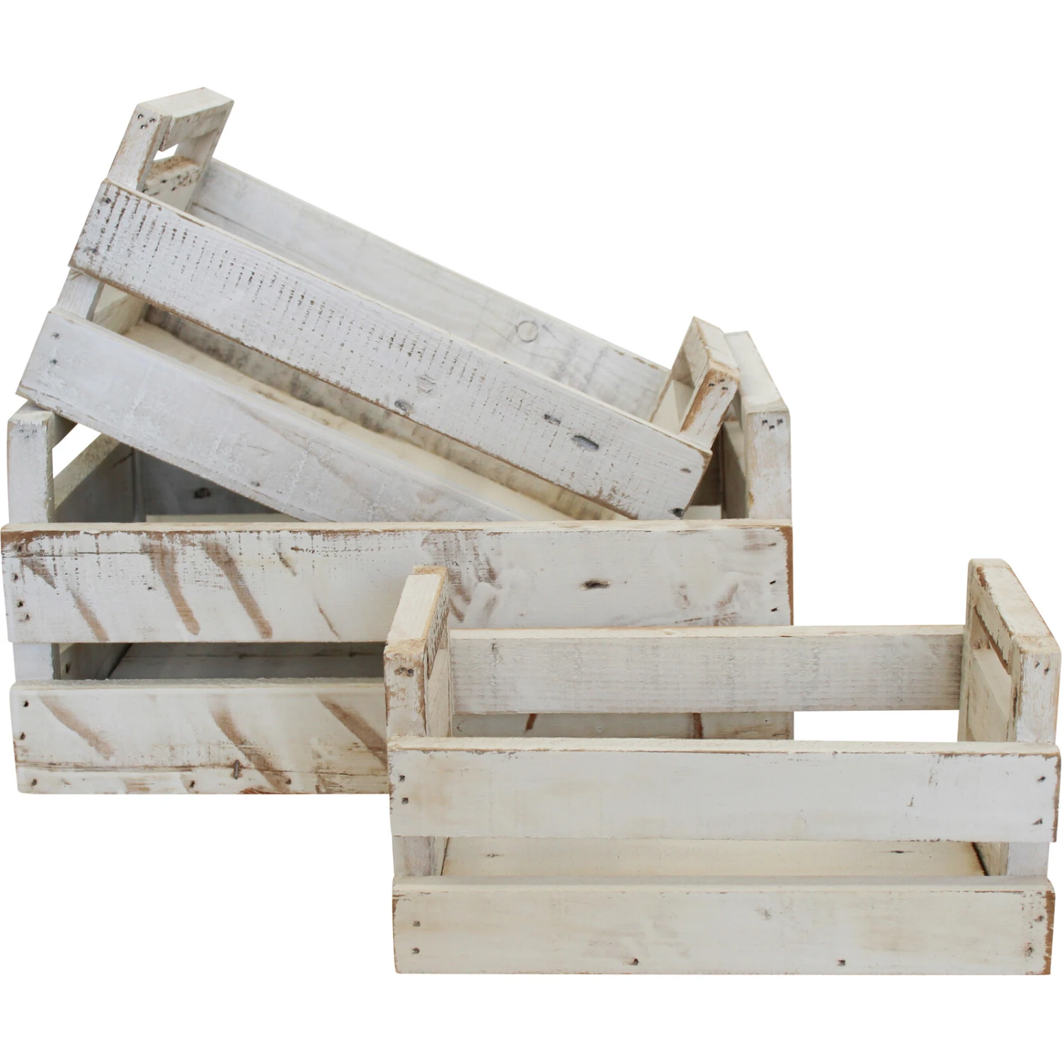 S/3 Boxes with Handles White Wash is built to intensify functionality. Made of durable, solid wood with a protective coating that makes it an heirloom quality. Woods are natural splendour that gives an ethereal touch to any interior. Plus, the aura it brings makes one’s home inviting and hospitable. Being an eco-friendly material, wood ages naturally and does not break down into environmentally damaging material.