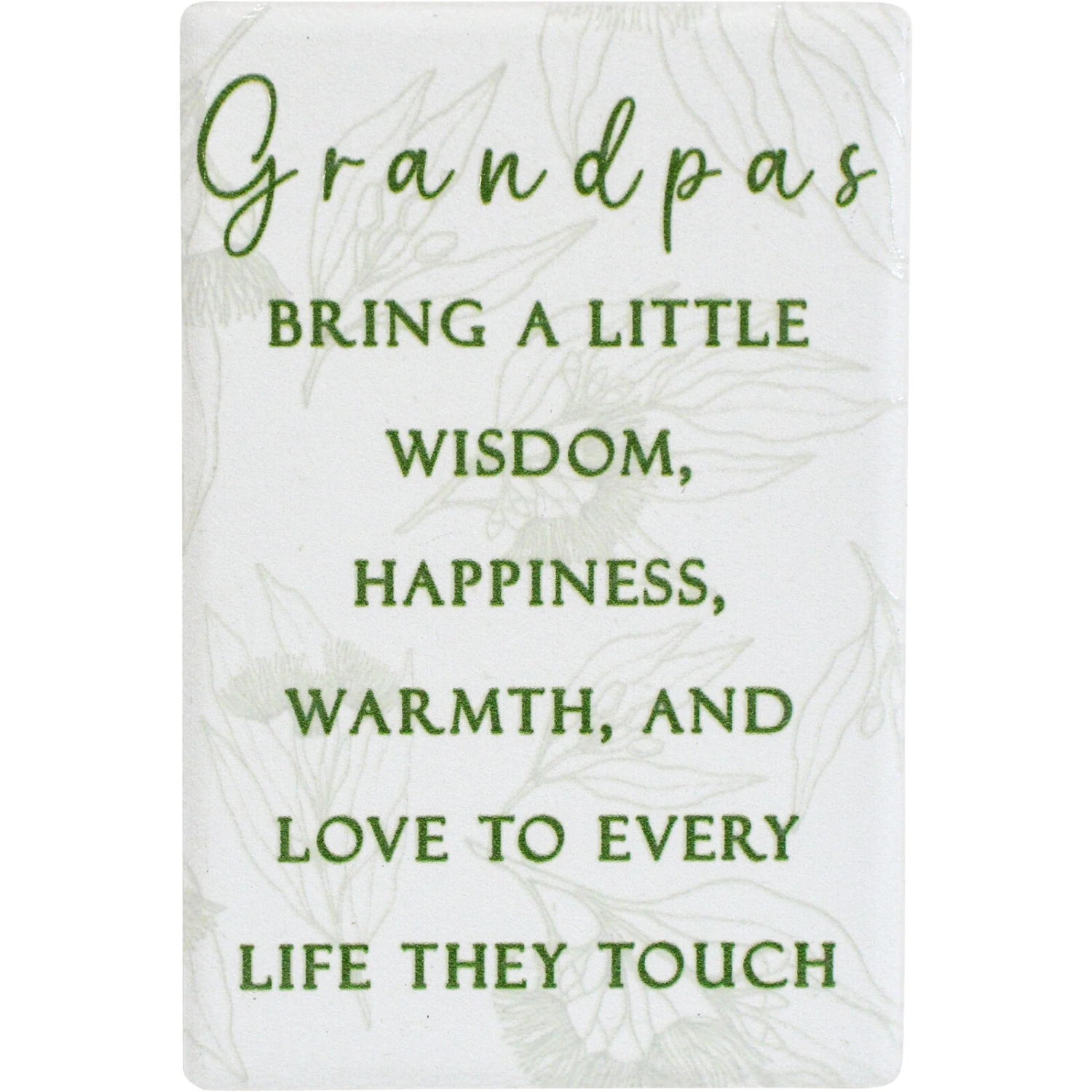 Here’s a heartwarming tribute to the incredible impact grandfathers have on our lives. The bold green text on a white background eloquently states, “Grandpas bring a little wisdom, happiness, warmth, and love to every life they touch,” encapsulating the essence of these remarkable individuals.