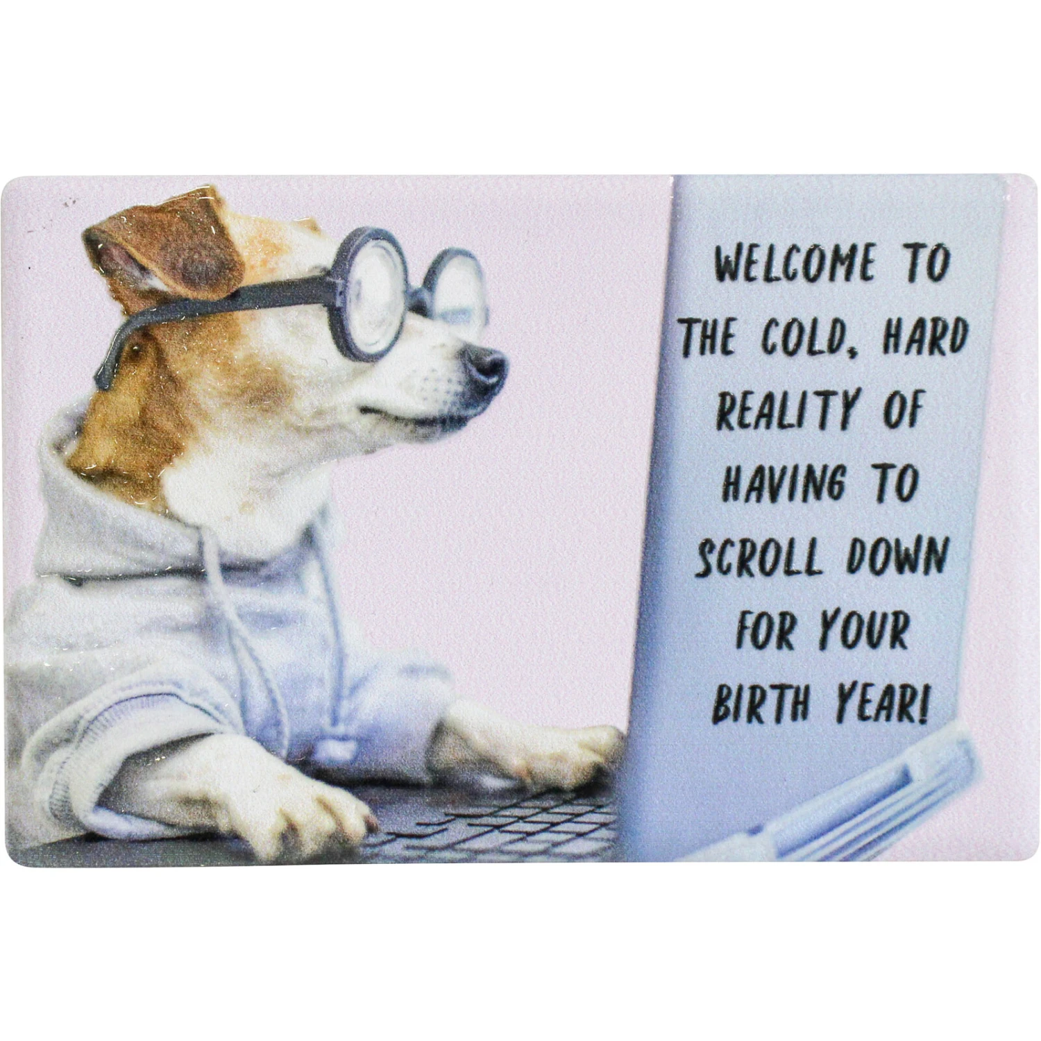 A witty portrayal of the transition into adulthood. This clever image showcases an endearing dog sporting glasses, seated beside a laptop, symbolizing the beginning of a new phase in life. As we grow older, we make sure to keep a positive attitude and take each moment in stride.