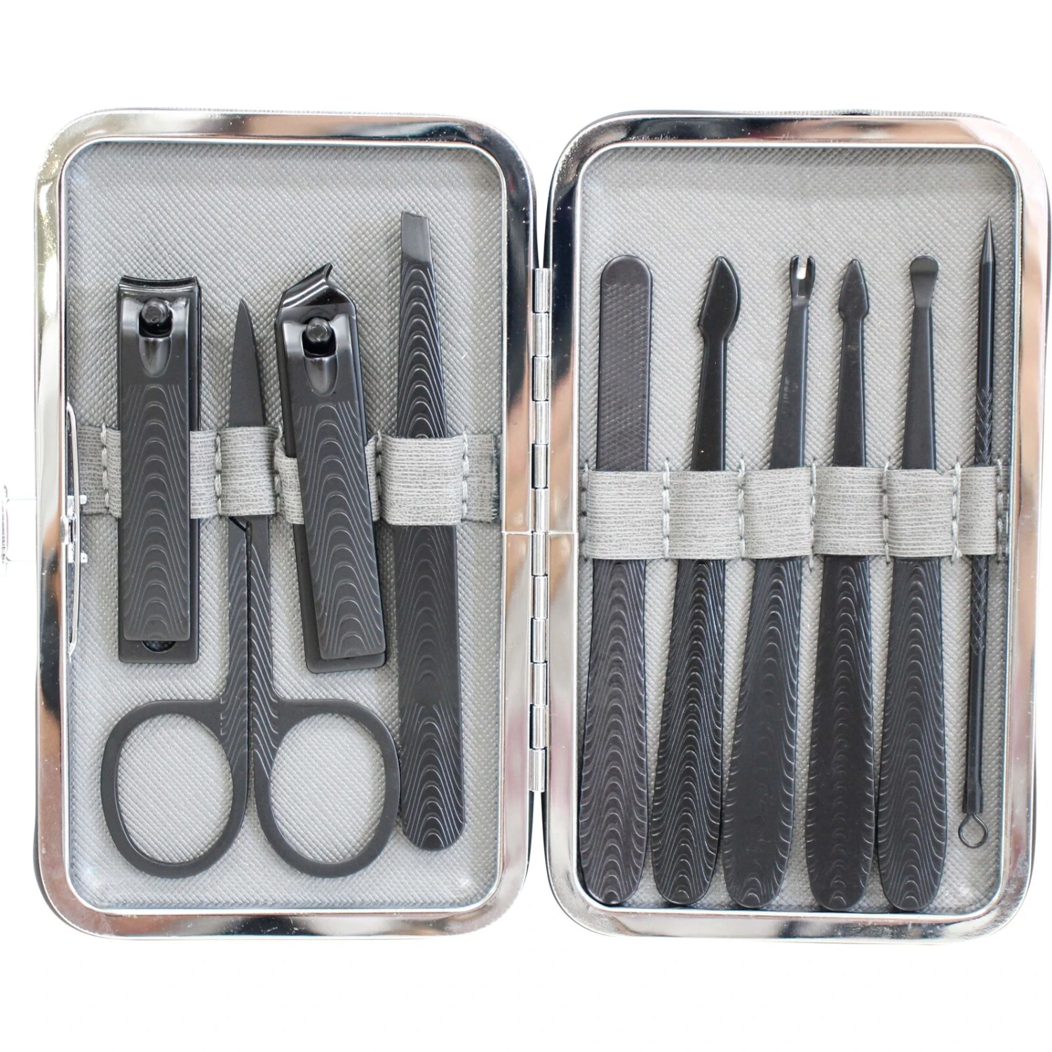 Elevate your personal care collection with the sleek and stylish Manicure Set Grey/Black, featuring a compact design of 12.5x8x2cm when closed. This essential grooming kit is thoughtfully crafted from durable materials including metal, plastic, and PU, ensuring longevity and ease of maintenance. Perfect for on-the-go touch-ups or at-home pampering, this set is an attractive addition to any retail selection, poised to capture the attention of customers seeking practical elegance in their grooming routine.