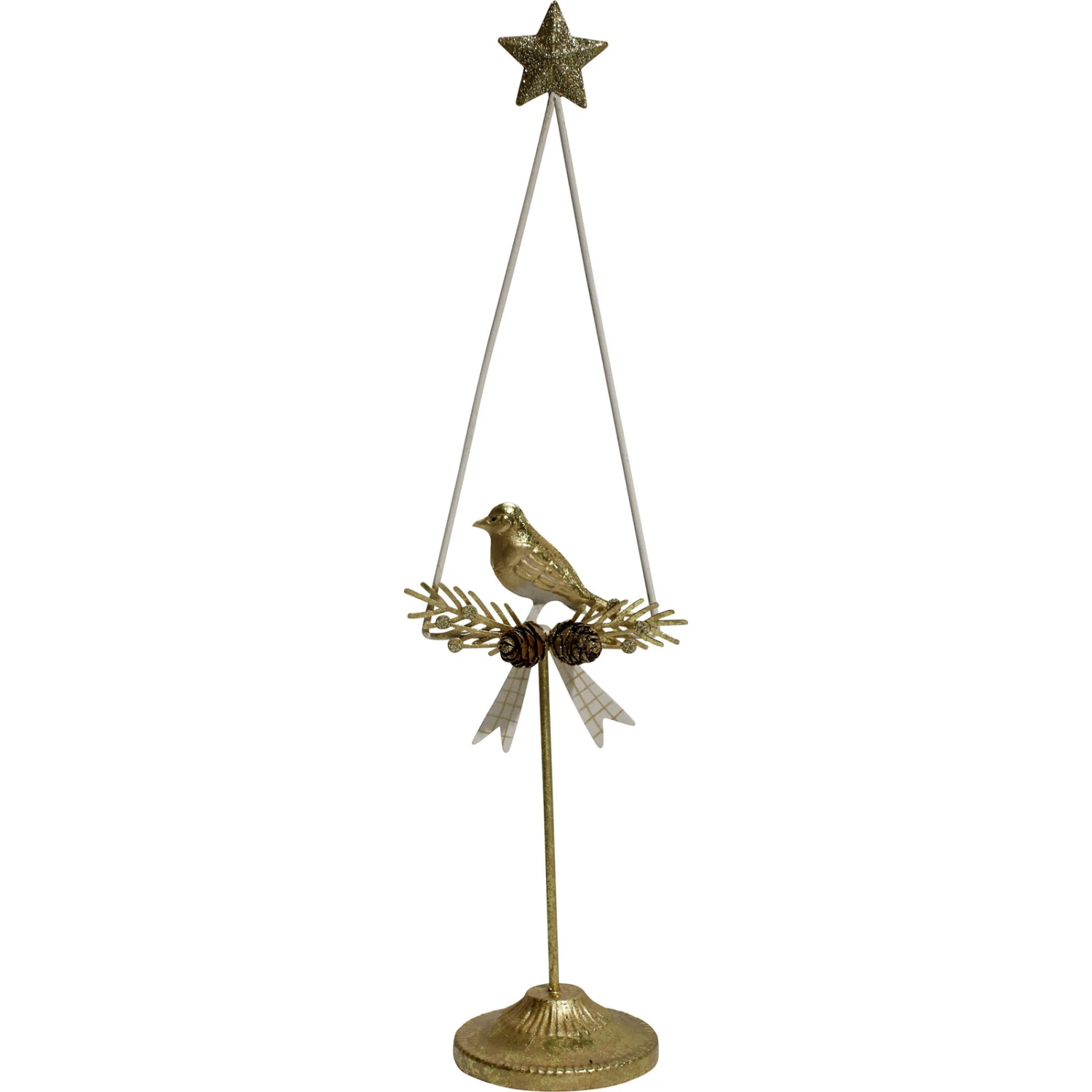 The fun part of the Christmas season lies as much in stocking up on the right kind of décor essentials as it is in finding those rare ones that give your home that little buzz of excitement. Here is a stand that could be placed on the tabletop or on the floor along with other festive paraphernalia. Will make a stunning statement with its 41 cm height – that rises up to a gorgeous glittering golden star on to. The stand features a bird that sits atop two sprigs of holly and the frame hints at the shape of a tree. A combination of symbols in keeping with the holiday season and utterly traditional in its elegant golden look.