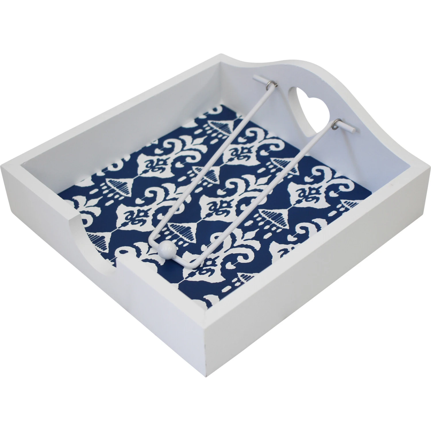 The Napkin Holder Blue Motif is a tastefully crafted napkin holder which would attract the attention and capture the fancy of quite a lot of your customers given its chic floral design and motif. As is the convention, this napkin holder is made in a rectangular shaped dimension. Unlike conventional napkin holders however, it is made through the use of specially engineered MDF material and features a cut-in love shape.