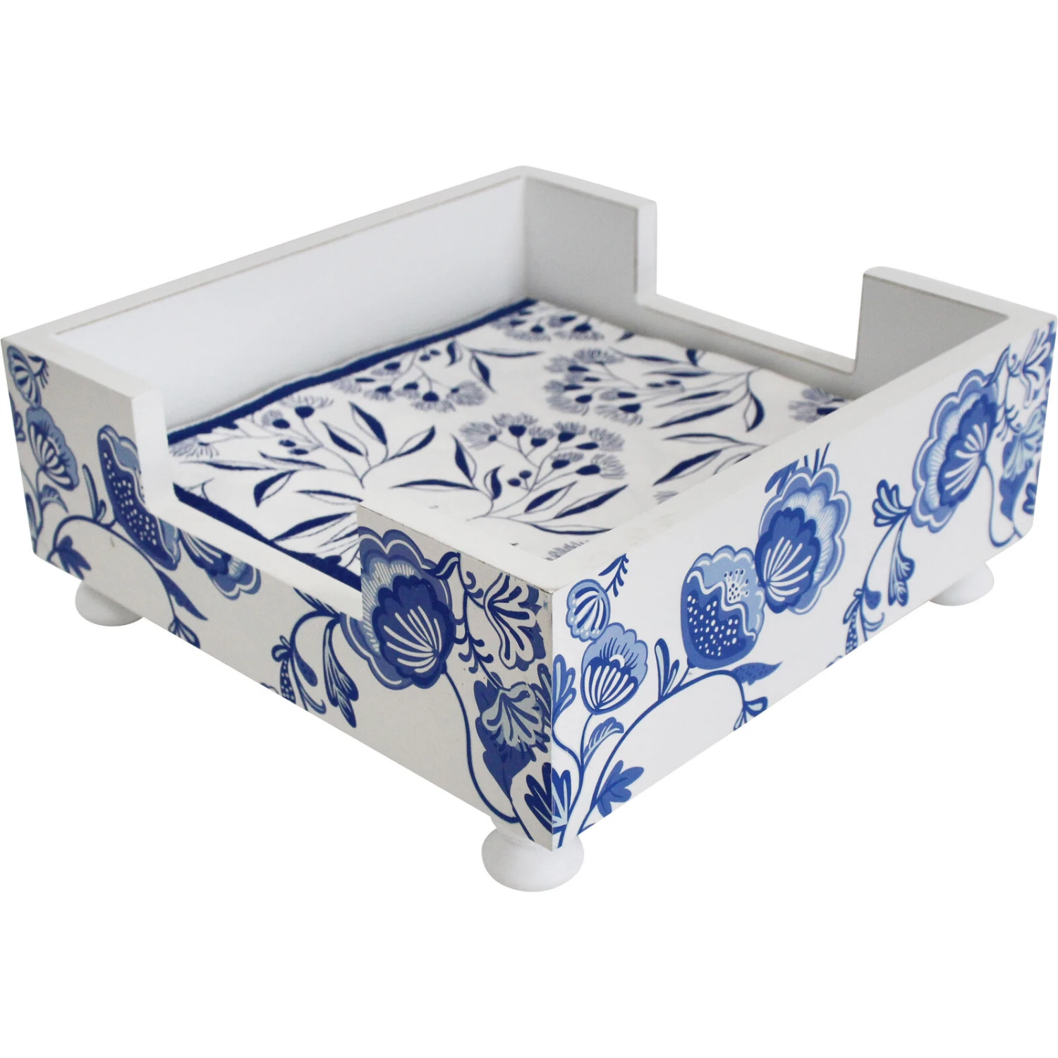 Experience the perfect balance of functionality and aesthetics with our Napkin Holder Blue/White. This wooden napkin holder is the secret to effortlessly elegant table settings. Its modern design adds a touch of sophistication to any setting, while its convenient size allows for easy napkin storage.