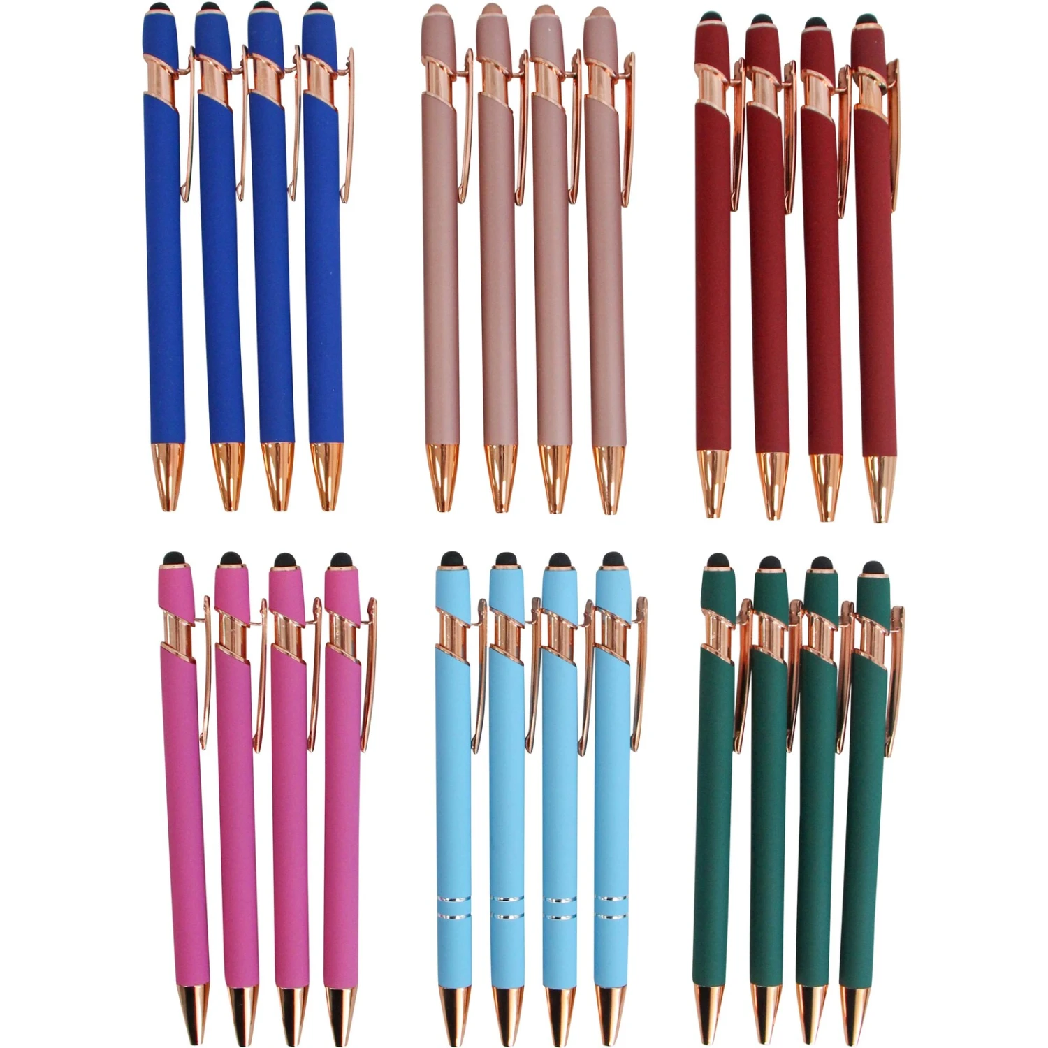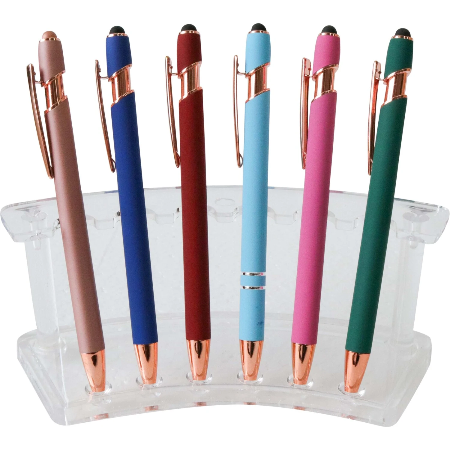 Experience the smooth writing and stylish design of the Pens S/24 Velvet collection, complete with a handy stand for organization and display. Crafted with a blend of durable plastic, sleek metal accents, and a silicone grip for comfort, these pens come in a variety of eye-catching colours to brighten up any desk. Retailers will find that the luxurious look and feel of these pens can entice customers seeking both function and fashion in their writing instruments.