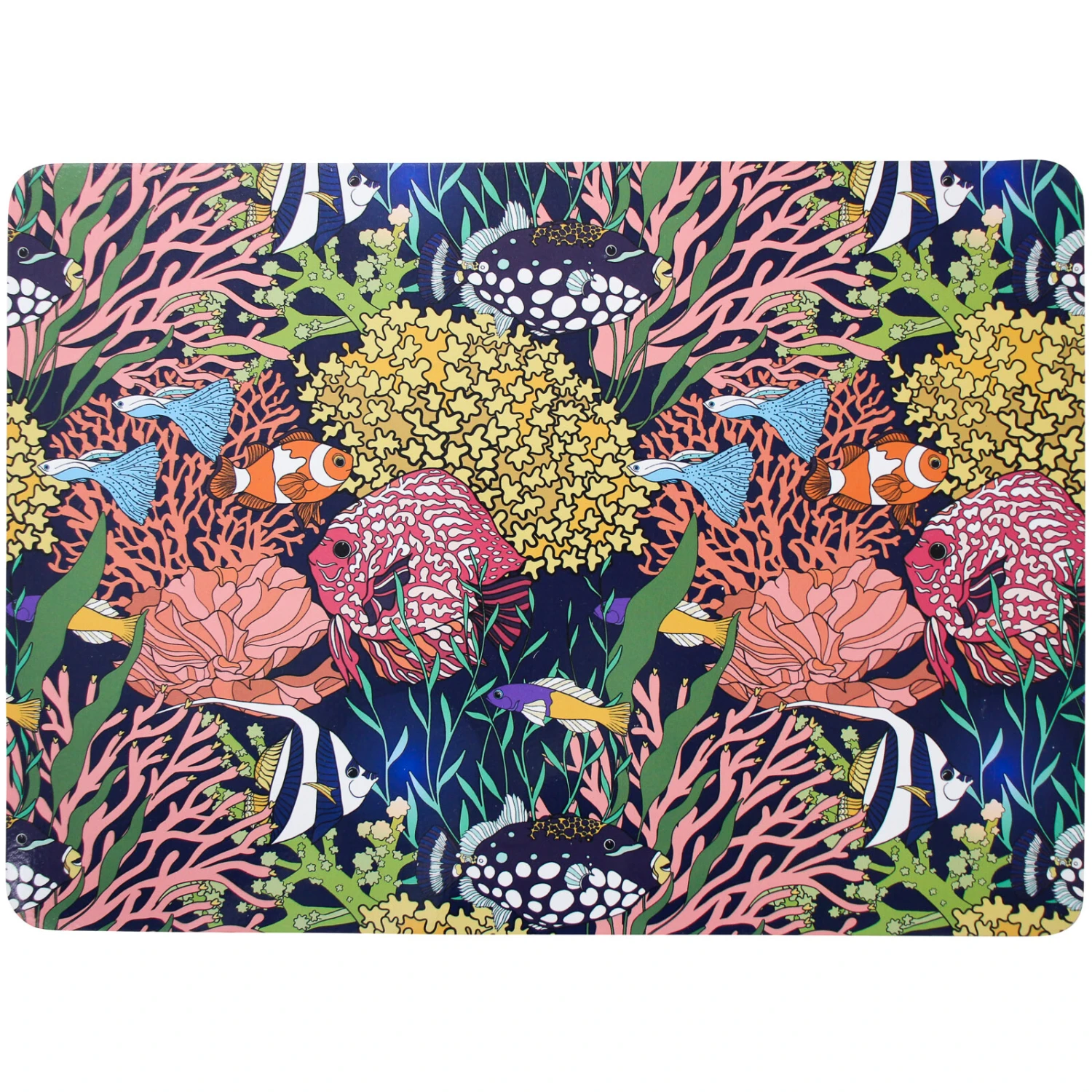 Placemat Reef S/4 pays homage to the overlaying textures of the coral reef. Its bold, lovely spectrum of colours makes it the perfect design for clients who wish to incorporate an exotic theme into their interior. Its tropical theme will complement bright décor, injecting tropical vibes into boring interior decor. Plus, it will make a grand statement against darker wood, likewise making white dishes pop. This placemat invites something interesting to the dining atmosphere, consequently transforming one’s interior.