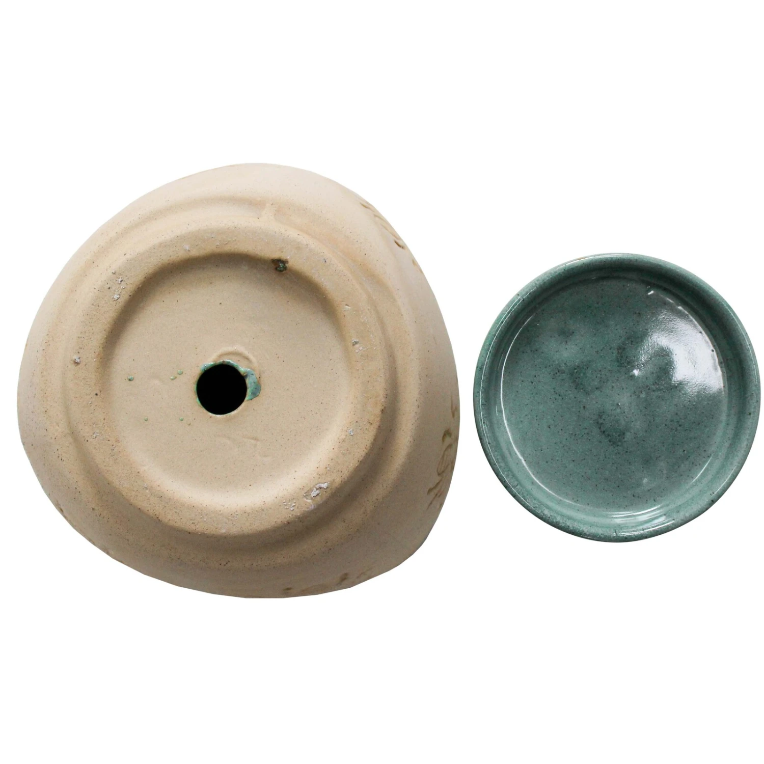 Has the ability to enhance the look of any plant that it holds-this delightful creation in ceramic has a smooth and pristine white outer body that highlights the print in yellow and a rim and base in soft blue colour. Will hold a small plant in its 15 cm diameter inner sanctum. Its height at 14 cm makes it small enough for window sill placement and table top settings as well.