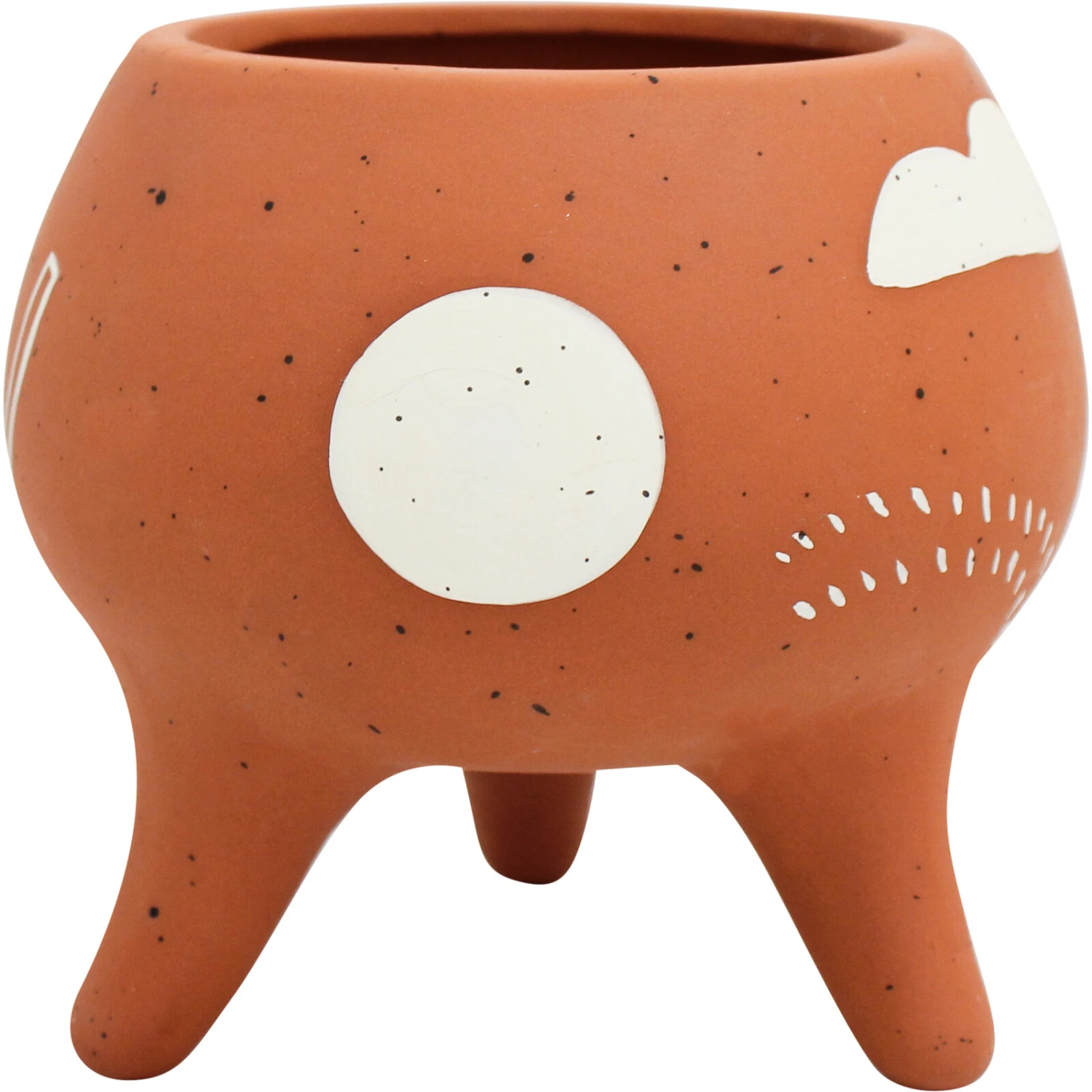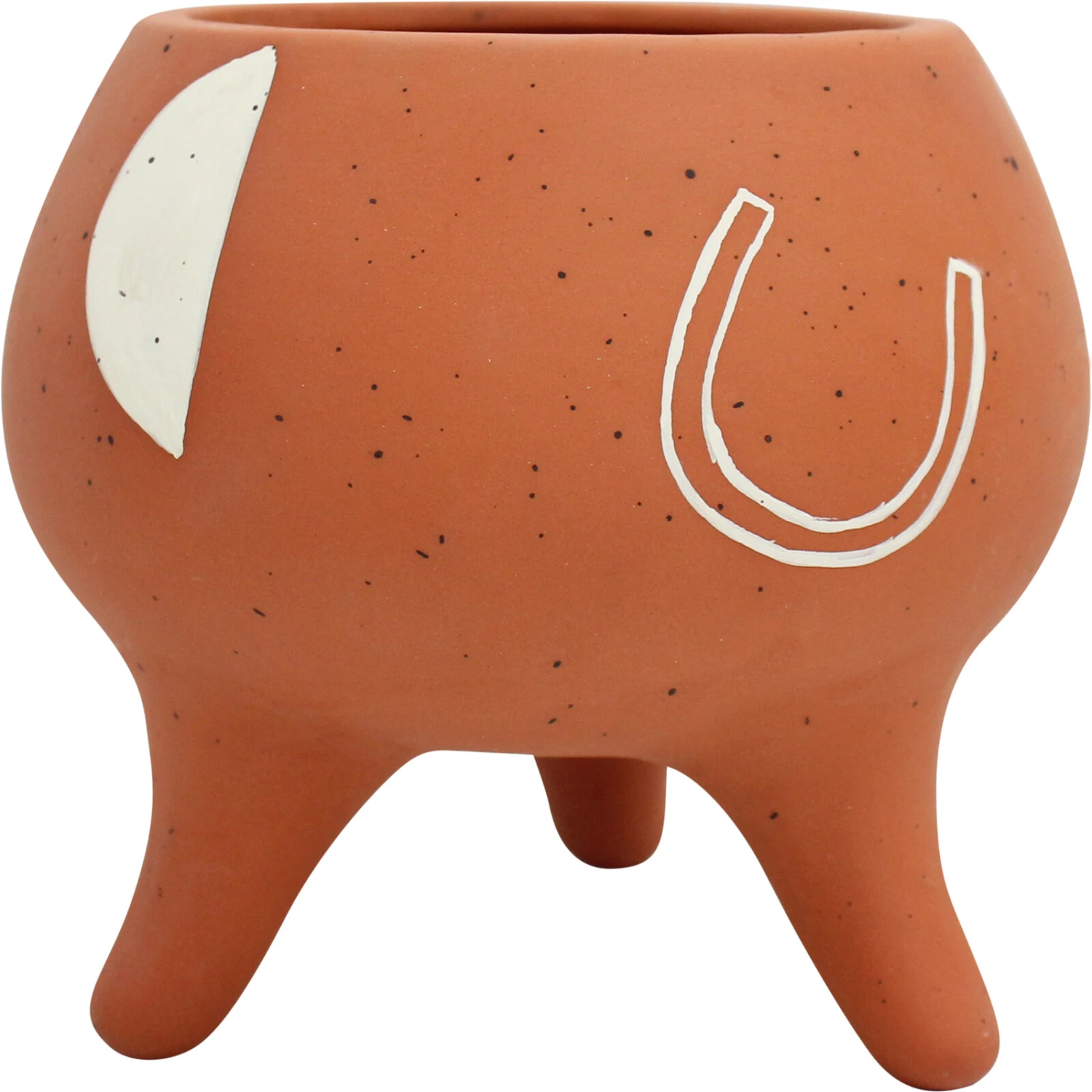 If it isn’t the unique design then certainly it will be the soft pastel colour which will make you fall in love with this one-of-a-kind planter. Almost tribal in its design, its soft terracotta colour, the tiny three legs on which it stands, and a round soft carving shape makes it rather pretty even as a simple display. Place your favourite greens in it – a fern or blooming plant, and help make that space come alive with a new fresh kind of beauty.