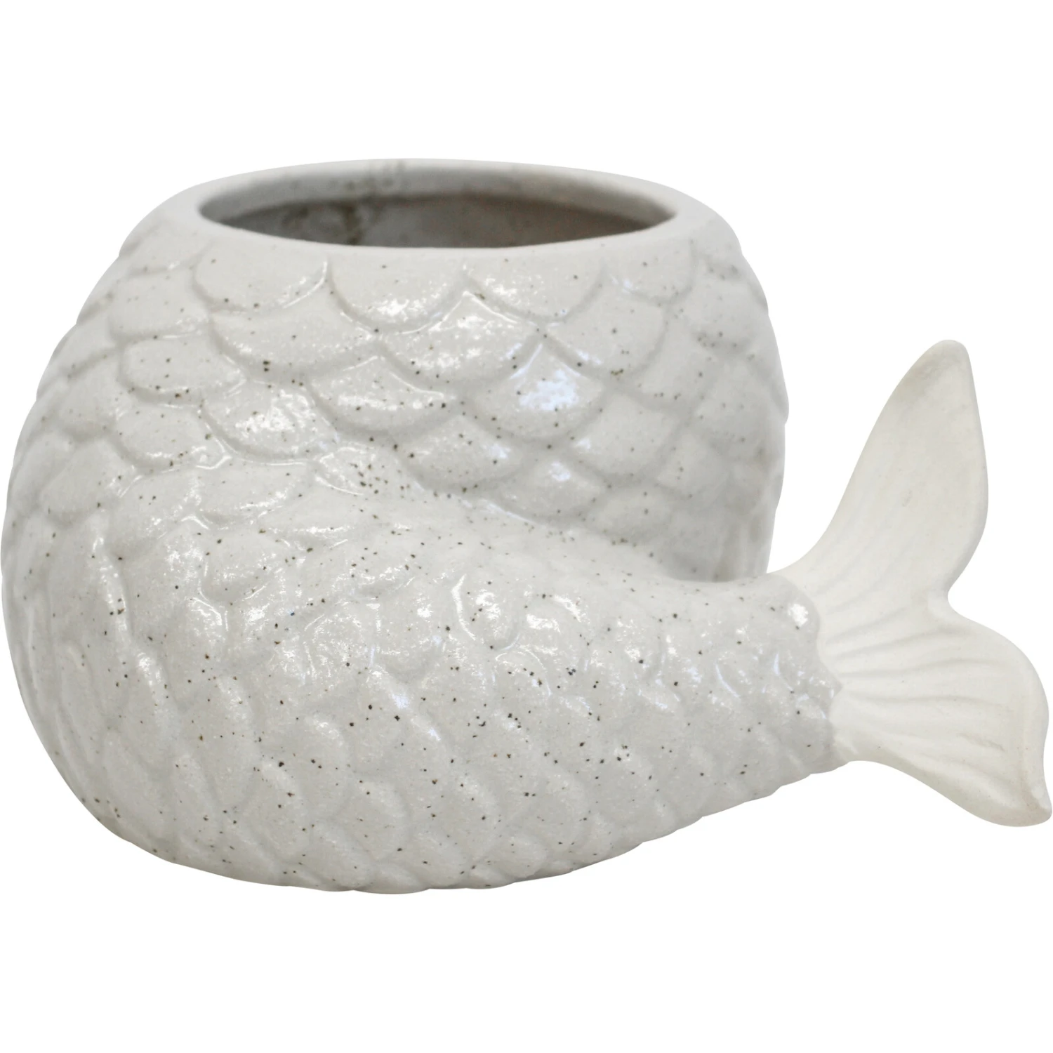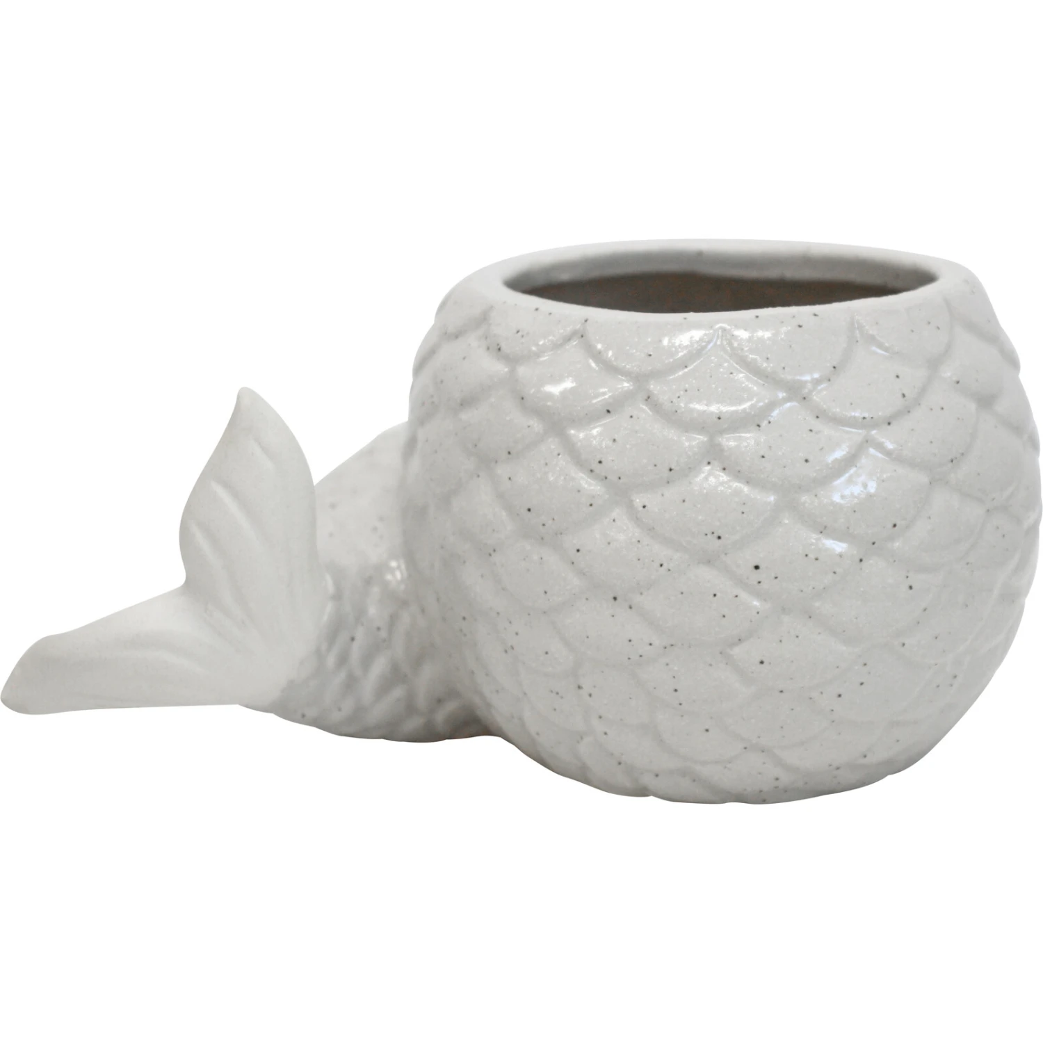 Planter Mermaid Tail Med features a fish scaly skin texture with a well-detailed design that makes it aesthetically appealing. This white-hued ceramic planter is suitable for both natural and artificial greens. An ornamental piece that will showcase the beauty of nature while spreading freshness within one’s space.
