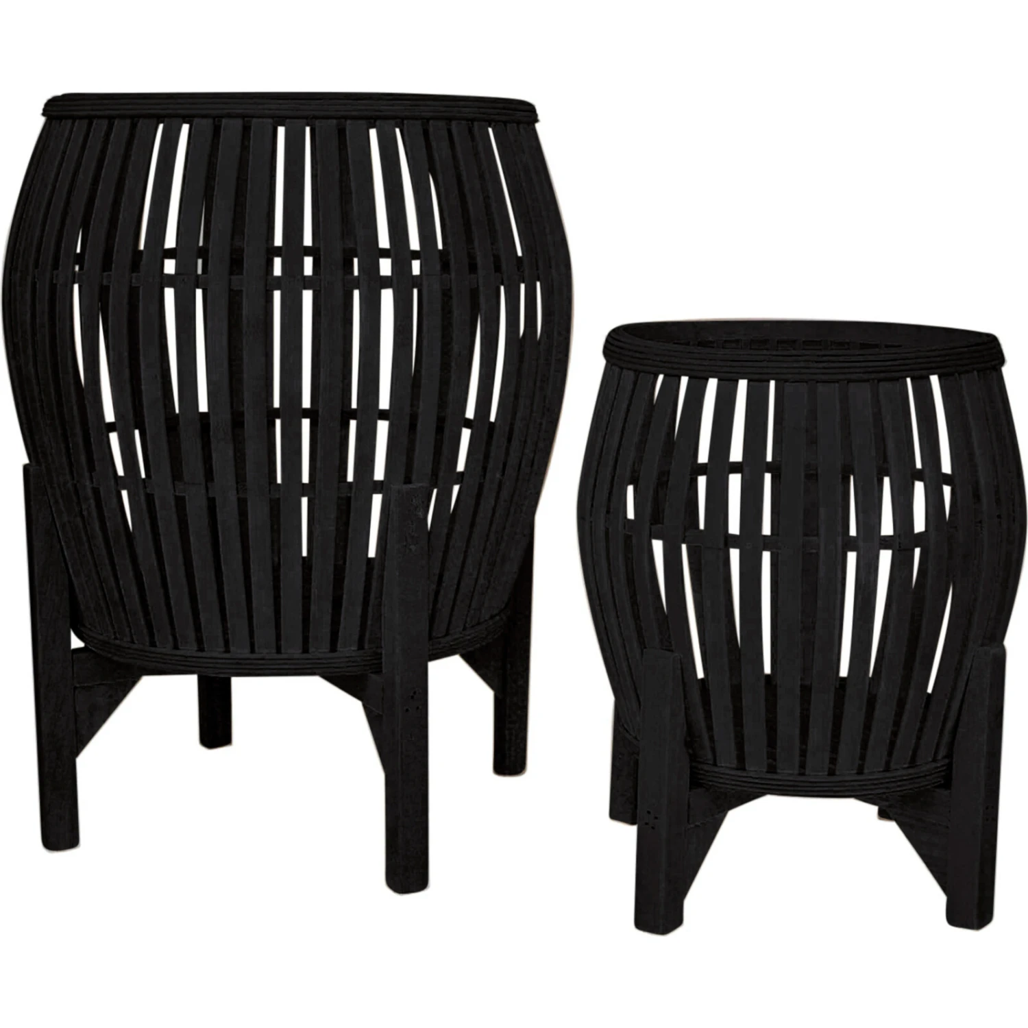 The Planter Paradise Black S/2 introduces a new, innovative way in which your customers can grow their plants. This planter maximizes the benefits of bamboo trees as it utilizes this tree in crafting a shapely, solid planter. It is shaped like a drum of wine standing straight with one open end and the base resting on four equally wooden pedestals. It is then ornately painted in a classic black colour.