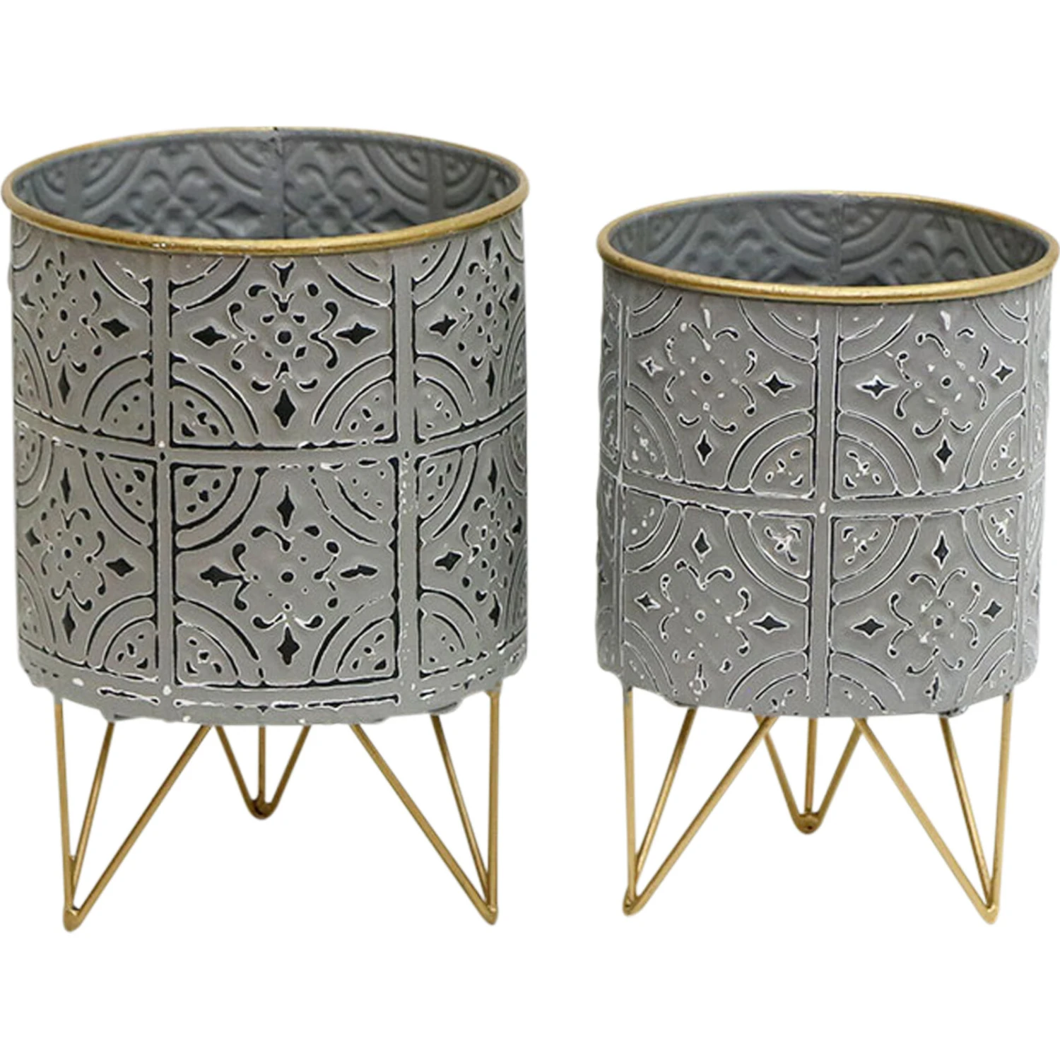Elevate your greenery with the Planter White on Legs Set of 2, designed to bring a touch of elegance to any home or office space. These charming planters, large measuring 18.5×18.5x26cm and small at 16x16x24cm, feature intricate patterns on a sleek white metal construction, complemented by stylish gold-toned legs. Perfect for retailers looking to offer customers a sophisticated option for indoor plant displays that seamlessly blend functionality and modern décor.
