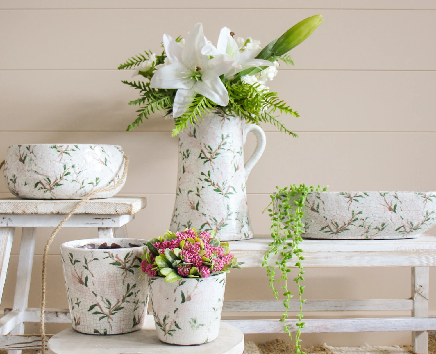 The Pot S/2 Magnolia showcases two beautifully moulded planting pots both of which are crafted in the same design and possess the same decorative appeal and practical plant growing functionality even though they differ in size. Shaped in a cylindrical form, the opening is wide and circular. Progressing downwards towards the base however, it narrows down to an even surface base.