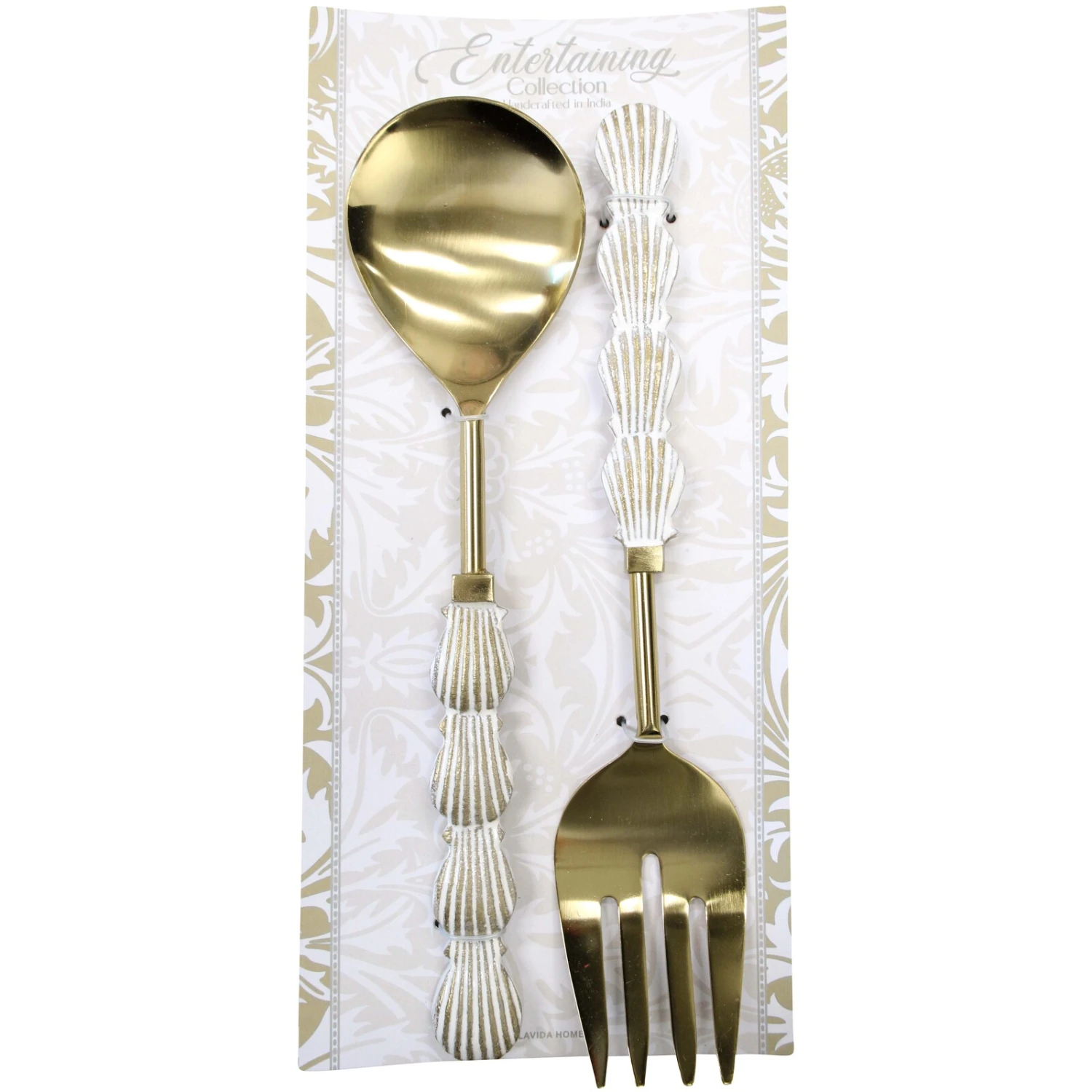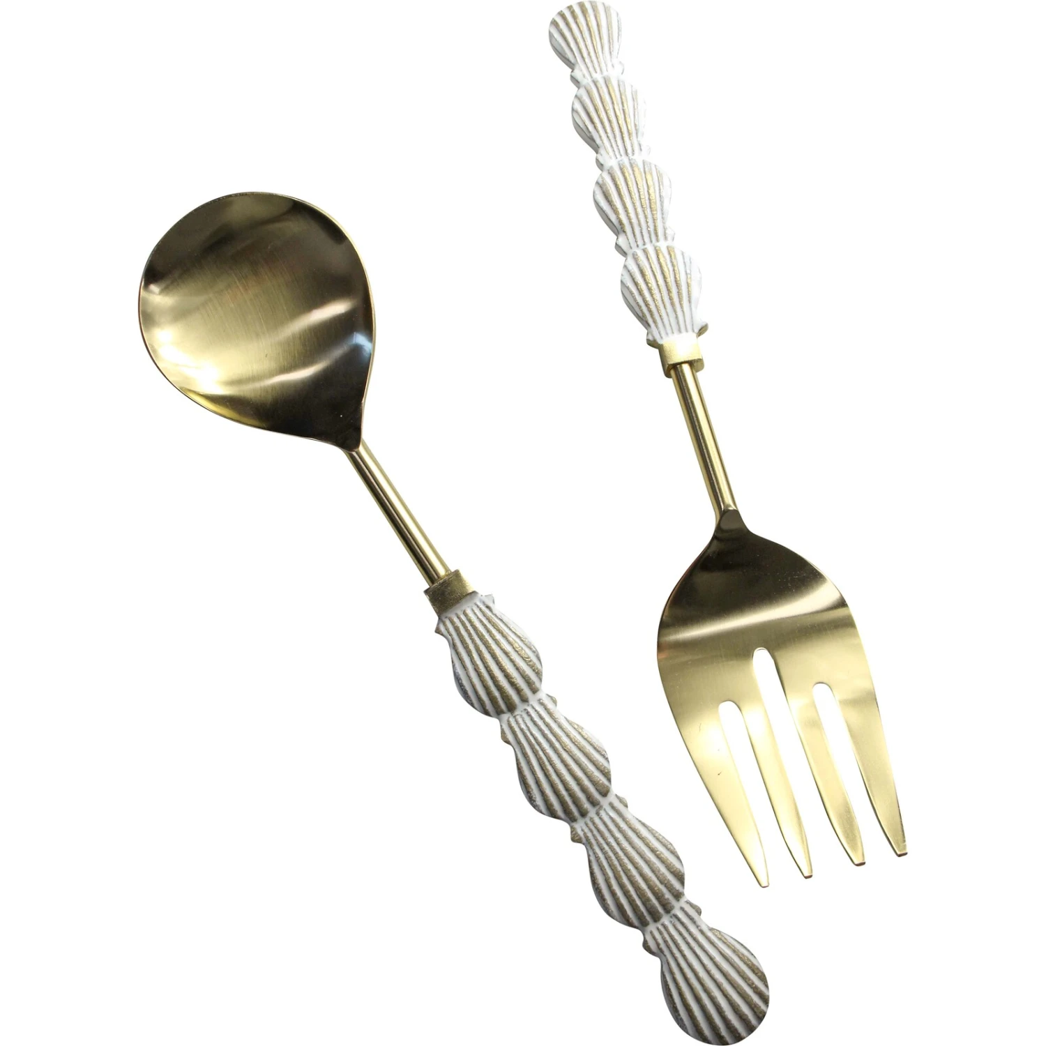 The Salad Servers Shell Handle S/2 is a set of two cutleries which gives pre-eminence to and emphasizes the need to eat like a king and wine like a prince. Consisting of a fork and a spoon both of which would be adept in the practical functional use of serving salads, this cutleries are certainly the desire of every host and hostess. Apart from its practical functionality, it is also ornamentally appealing.