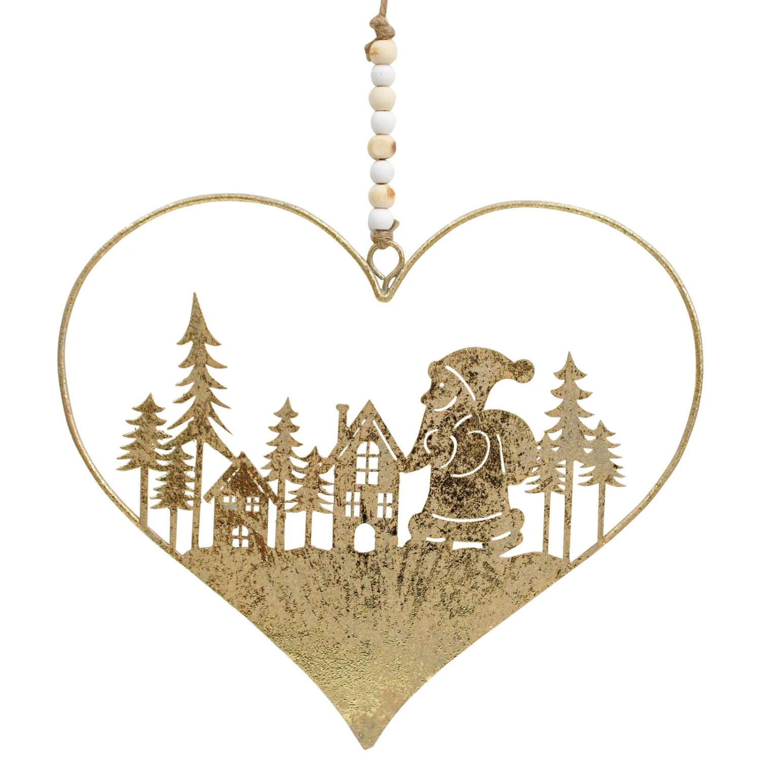 Introducing our enchanting heart-shaped ornament, a true testament to holiday joy! Crafted entirely from premium metal, this exclusive piece embodies the iconic silhouette of Santa Claus, radiating festive cheer. Picture Santa, his merry figure carrying a bag of gifts, captured in a moment of pure delight within this meticulously shaped ornament.