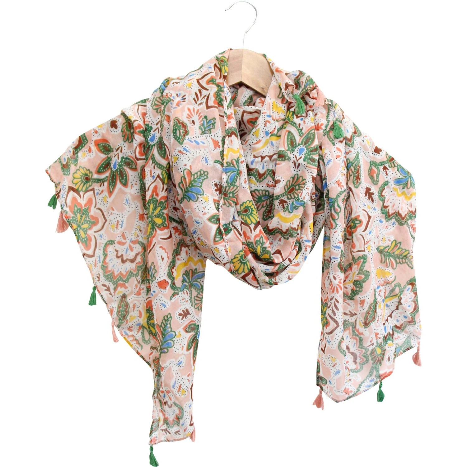 Wrap up your collection with the Scarf/Sarong Tyla, an elegant and versatile addition that boasts a stunning, intricate design spanning its generous dimensions of approximately 90x180cm. Crafted from breezy Polyester’, this eye-catching piece transitions effortlessly from a chic scarf to a beach-ready sarong. Its vibrant patterns and playful tassels edge will captivate your customers, making it an irresistible summer staple for fashion-forward wardrobes.