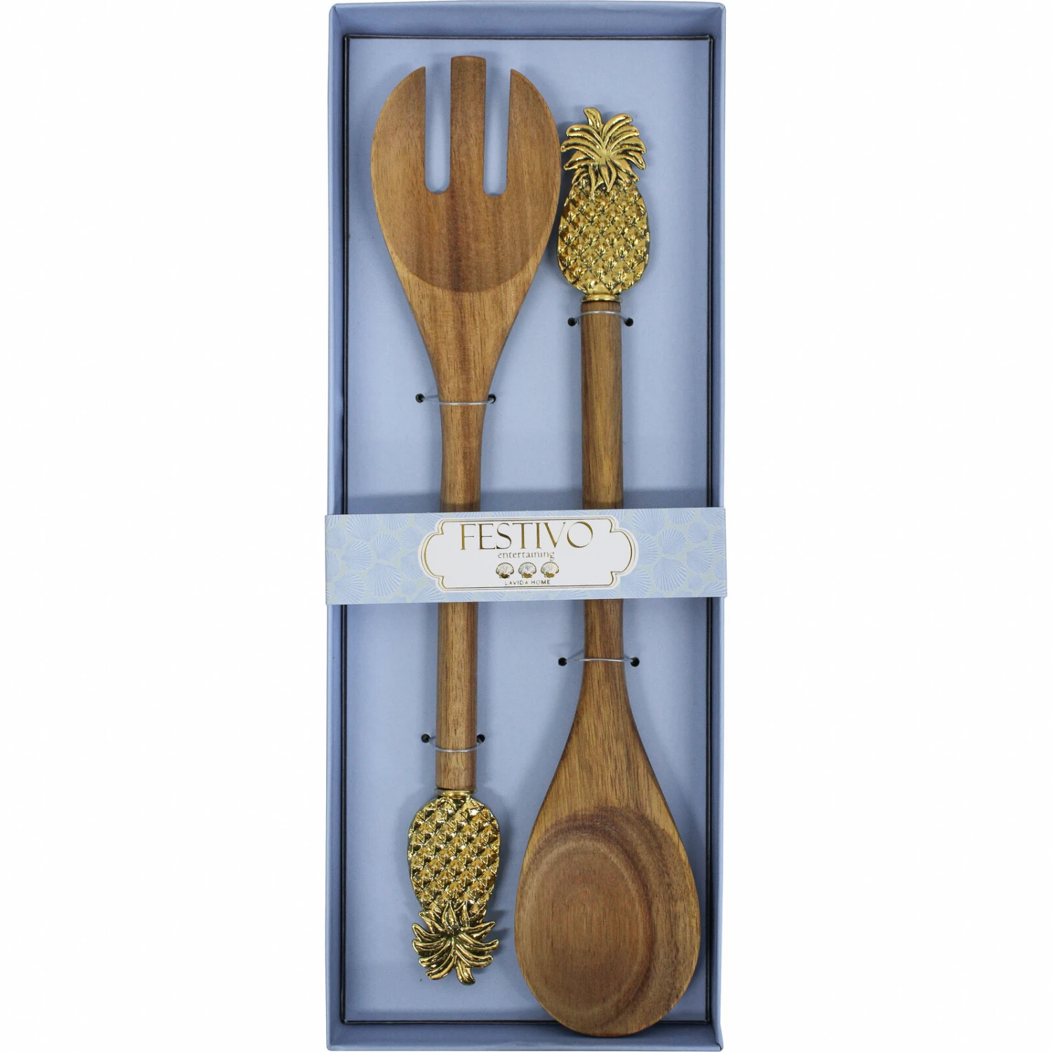 Add a touch of tropical elegance to your dining experience with the Server S/2 Pineapple set, a delightful duo perfect for entertaining guests with style. Crafted from durable acacia wood with metallic pineapple accents, these servers measure 35 x 13.3 x 3.3 cm, effortlessly combining functionality with a festive design. Retailers will find this charming set easily captivates shoppers seeking a blend of practicality and decorative flair for their tabletops.