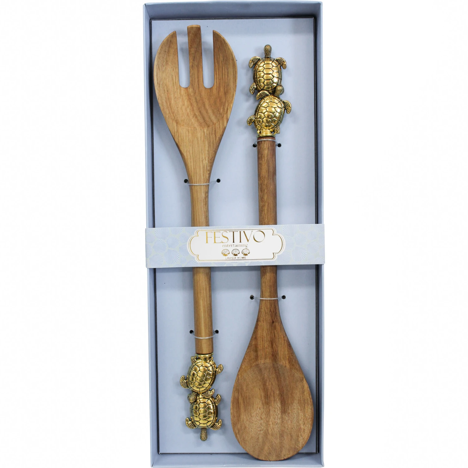 Elevate your dining experience with the Server S/2 Turtle set, a sophisticated pairing of form and function. Crafted from high-quality acacia wood and embellished with intricately designed metal turtles, these serving utensils measure 35×13.3×3.3cm, combining timeless style with practicality. Retailers, this set is sure to captivate customers seeking an elegant touch for their entertaining essentials, driving sales with its unique charm.