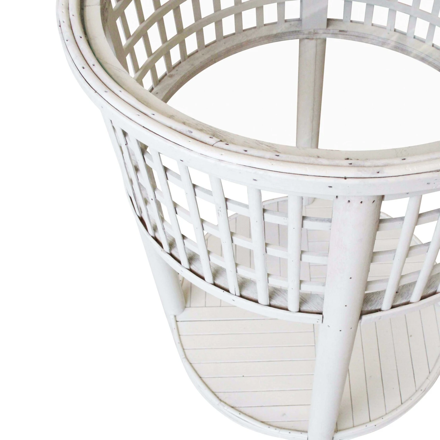 This elegant white plant stand features a unique circular design that adds a touch of sophistication to any home or garden space. Crafted from durable materials, it boasts a fresh white finish that complements a wide range of decor styles. The upper tier showcases a slatted base and raised edges, perfect for securely holding potted plants and allowing for drainage. Below, the lower shelf provides additional space for more plants or decorative items. The stand’s openwork side panels offer an airy feel while ensuring stability and support. Ideal for indoor or outdoor use, this charming plant stand is both functional and decorative, enhancing the beauty of your plant collection.