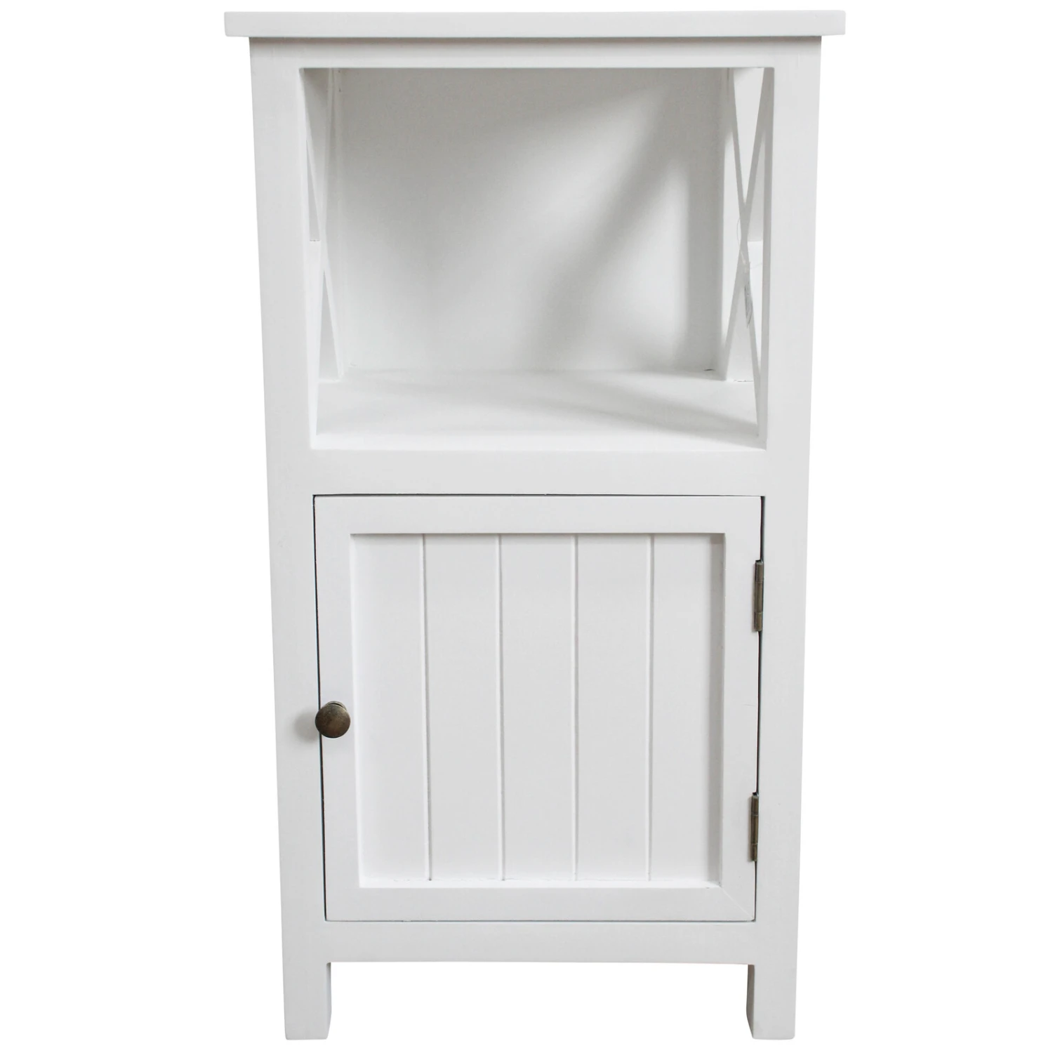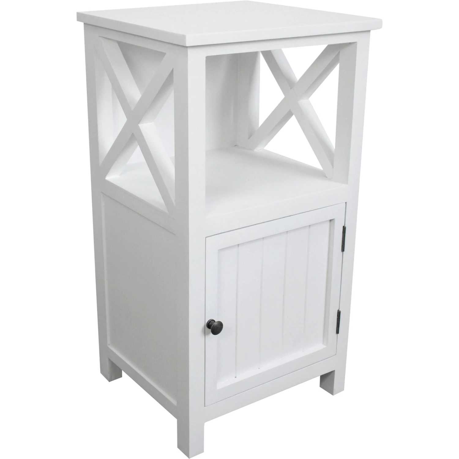This cottage and country style white wood bedside table comprehensively allows you space for storing wike also helping make you bedroom look more stylishly accentuated. Will look gorgeous when combined with a wooden bed or even a metal framed one because white coloured wood has the ardent ability to fit in and hold its own space where ever it is placed. You will love its clean robust look and its little cupboard space meant to hold all knick knacks that you wish to put away.