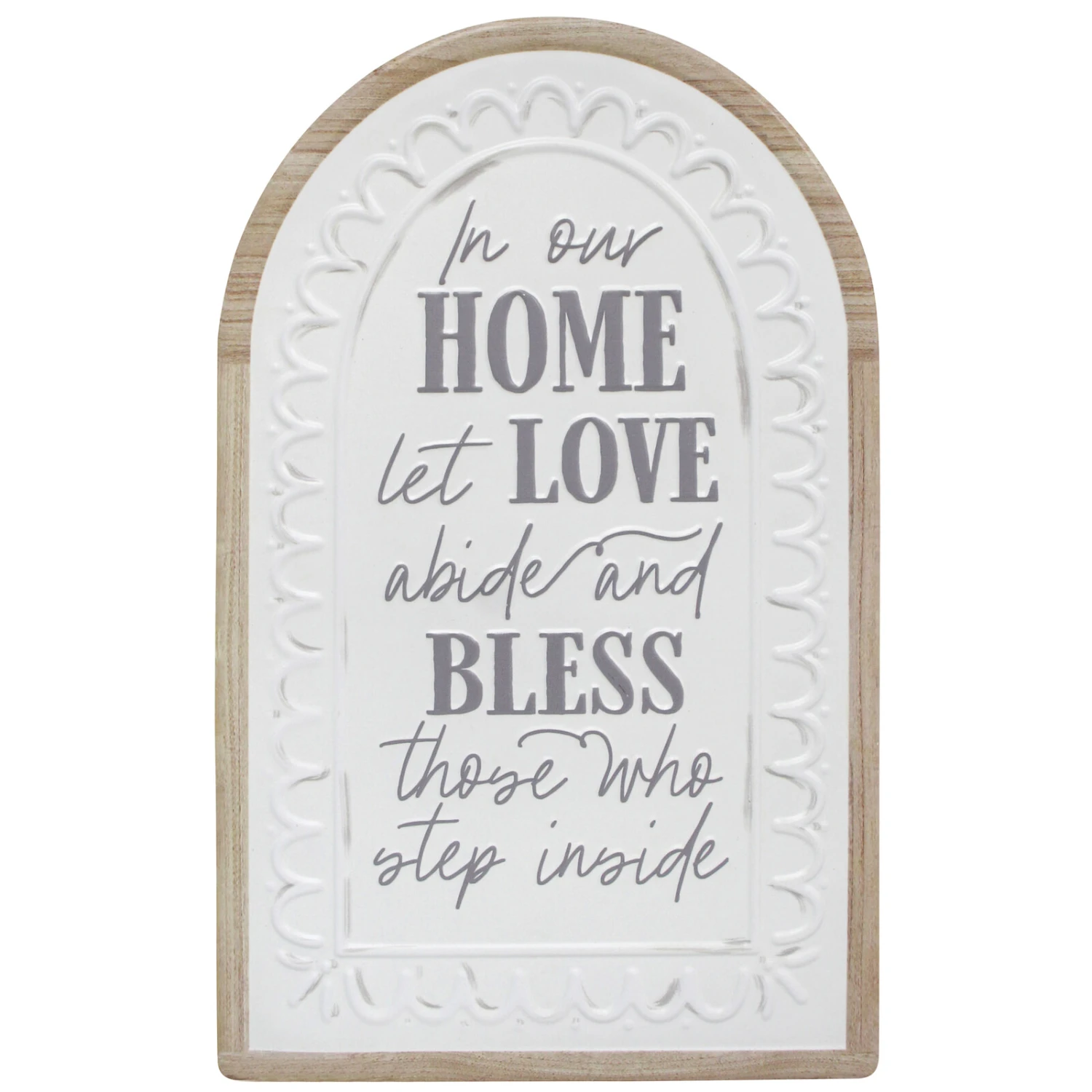 Add a touch of warmth and heartfelt sentiment to any space with the Sign Home Love Abide, measuring a welcoming 23.8×0.6×39.1cm. Crafted from a blend of durable metal and MDF with a classic colour scheme, this sign carries an inviting message that reads “In our HOME let LOVE abide and BLESS those who step inside,” making it a perfect fit for home décor sections. Retailers can captivate customers seeking to create a cozy and nurturing atmosphere in their homes, offering this piece as a thoughtful gift or a charming addition to any room.