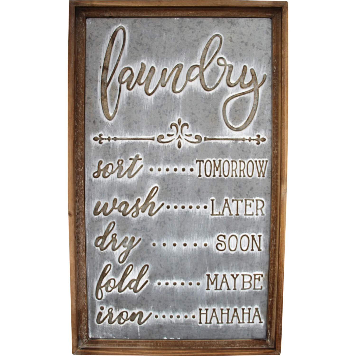 For those who have always doing the laundry one of the most boring and mundane of chores, here is the sign board to cheer things u for you. Add this quirky little wall accent in your home and make things feel much happier despite its repetitive and boring nature. Made from metal and given a wooden frame, its beautiful in its delightfully simple and adorable message.