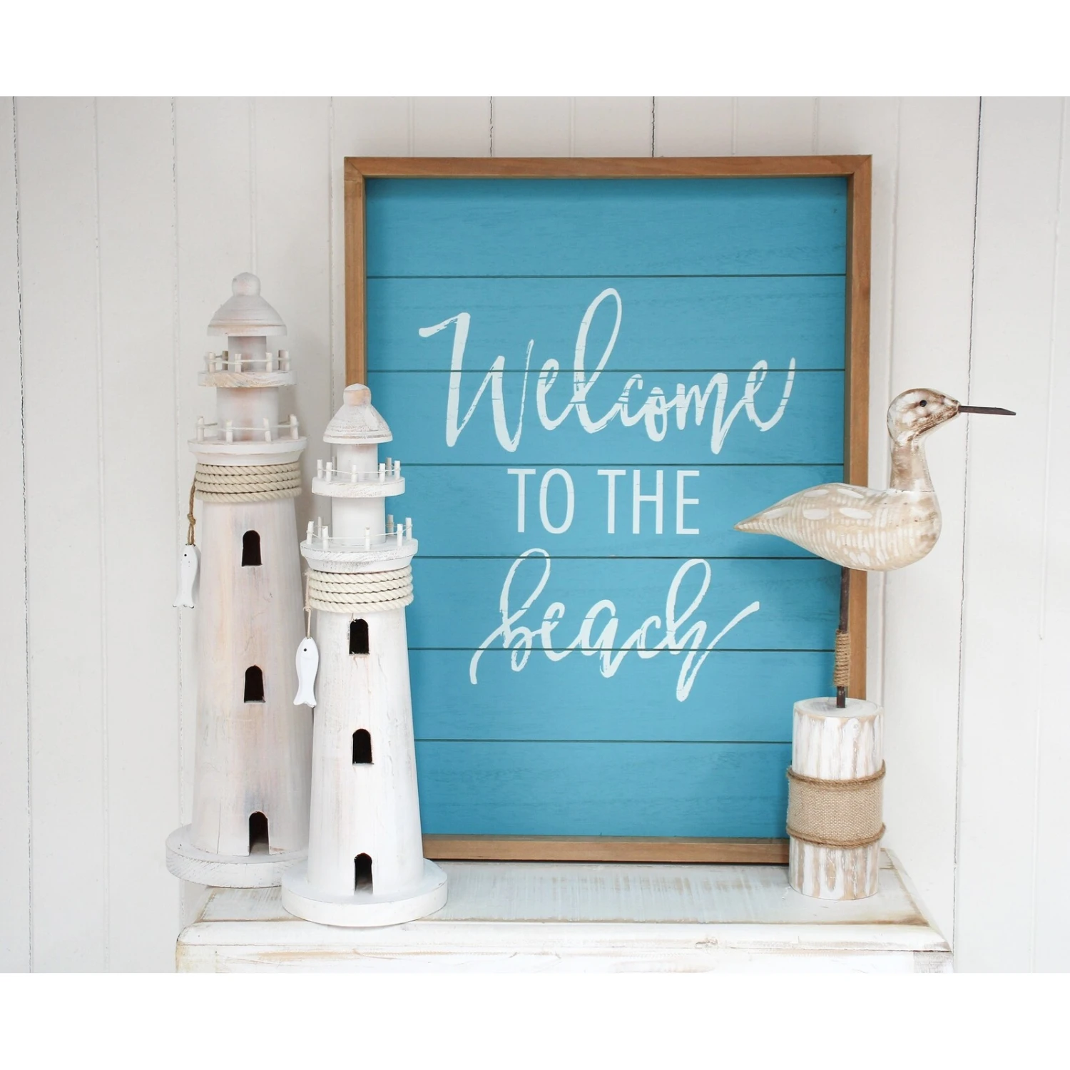 Add a serene coastal charm to any retail space with the “Welcome to the Beach” sign. Crafted with a gentle ocean blue backdrop, this inviting piece measures 42.5x4x58cm and is made from durable MDF. Its soothing palette and beach-inspired design are sure to captivate customers, making it a perfect addition for stores aiming to evoke the tranquility of seaside living.