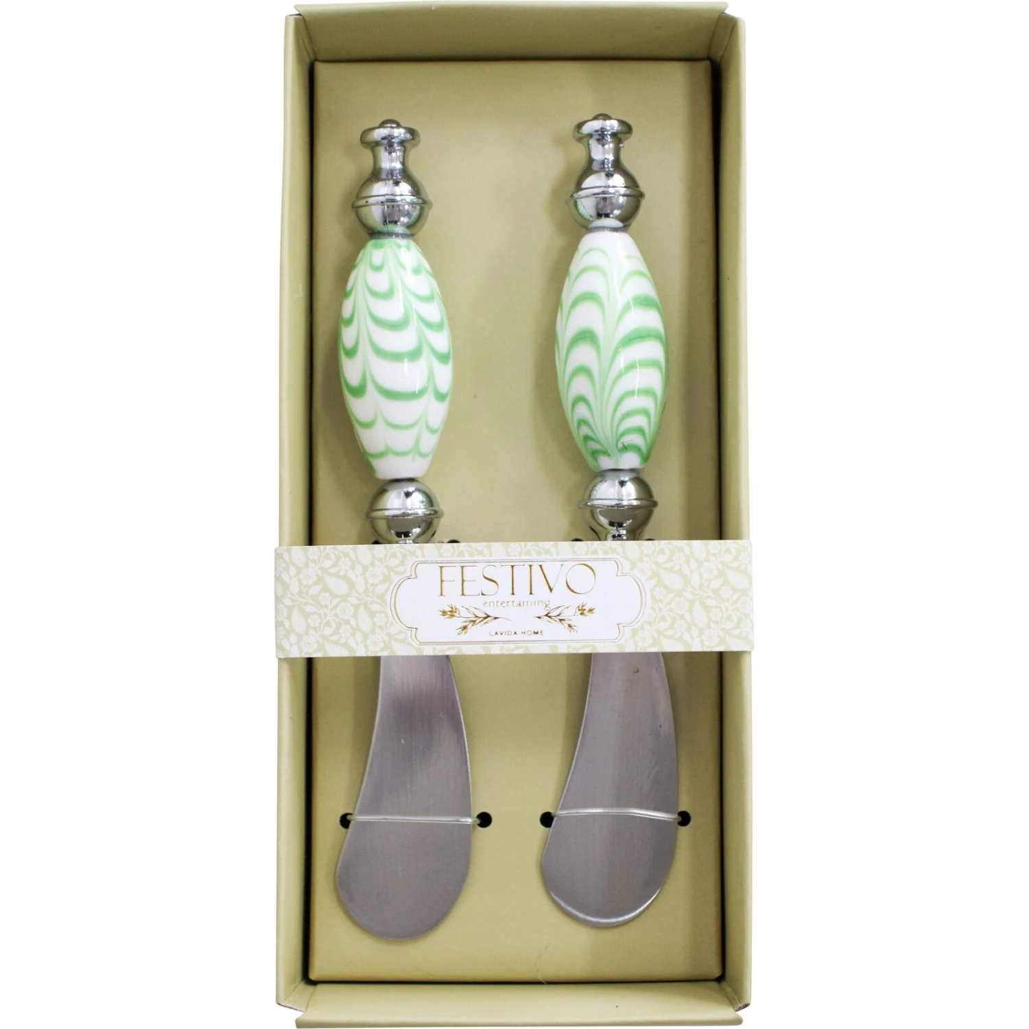 Elevate your customers’ entertaining experiences with the Spreader S/2 Juniper Garden set, an exquisite duo of spreaders that blend functionality with elegance. These spreaders feature striking juniper-inspired patterns on the handles and are crafted from durable metal, providing a high-quality feel and lasting use. With dimensions of 18×8.5×4.2cm and a refreshing colour scheme, this set can attract shoppers looking for stylish yet practical kitchen accessories that add a hint of sophistication to any table setting.