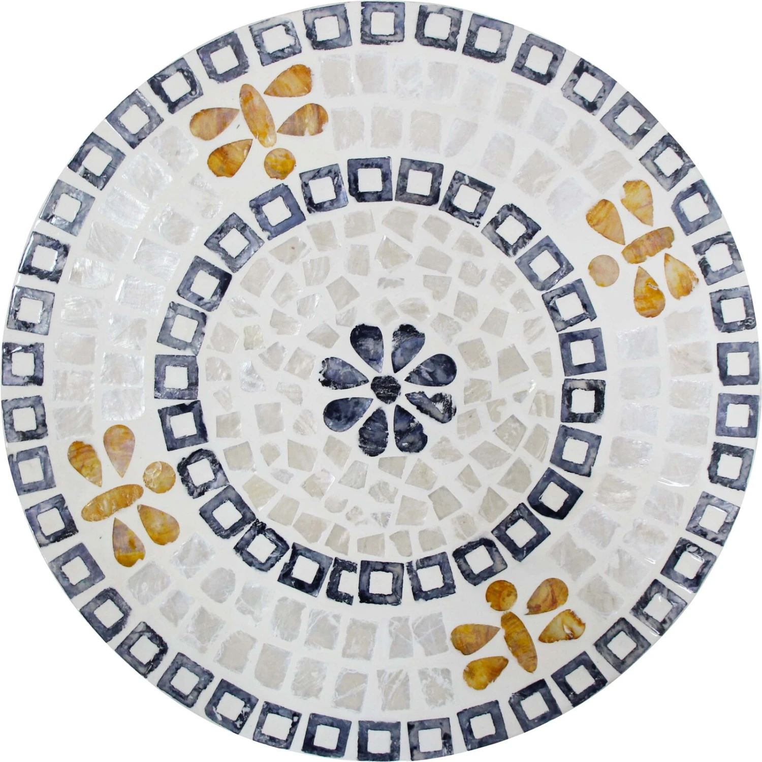 Embrace the allure of nature with the Stool Bee Flower, a charming piece that marries functionality with art. Crafted with the lustrous shimmer of Capiz shells and the sturdiness of MDF, this stool showcases a captivating bee and flower mosaic in a subtle colour palette, complementing a variety of décor themes. With dimensions of 35x47cm, this exquisite item is poised to become a conversation starter, inviting customers to add a touch of elegance and whimsy to their spaces.