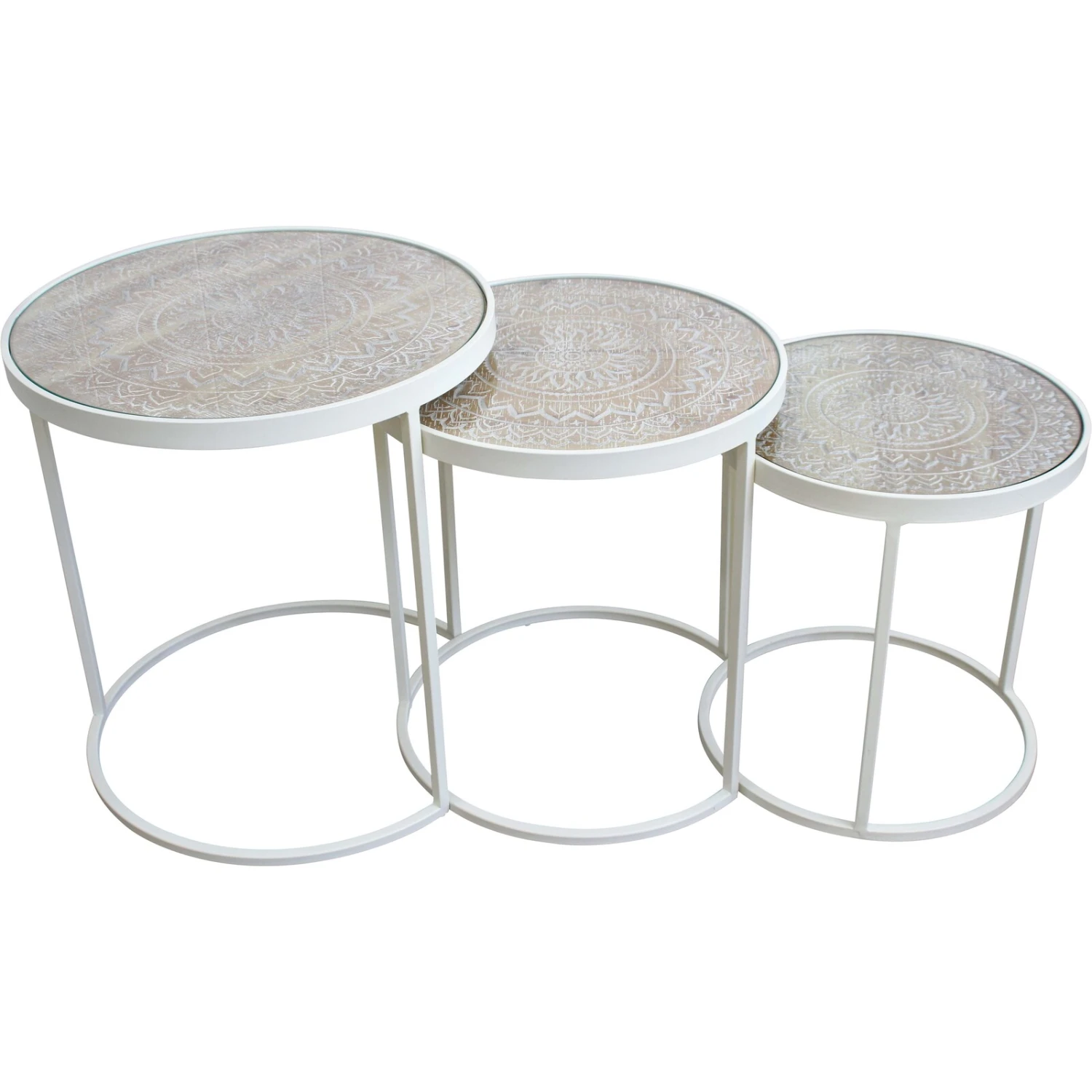Elevate your boutique’s decor offerings with the exquisite Tables S/3 Nest set, where traditional artistry meets modern utility. This trio of nesting tables showcases a stunning fusion of metal, glass, and MDF construction, with dimensions tailored for versatility (L:47x47x50cm, M:42x42x45cm, S:37x37x40cm). Their captivating design in neutral tones promises to allure discerning customers seeking multifunctional elegance and a touch of sophistication in their living spaces.