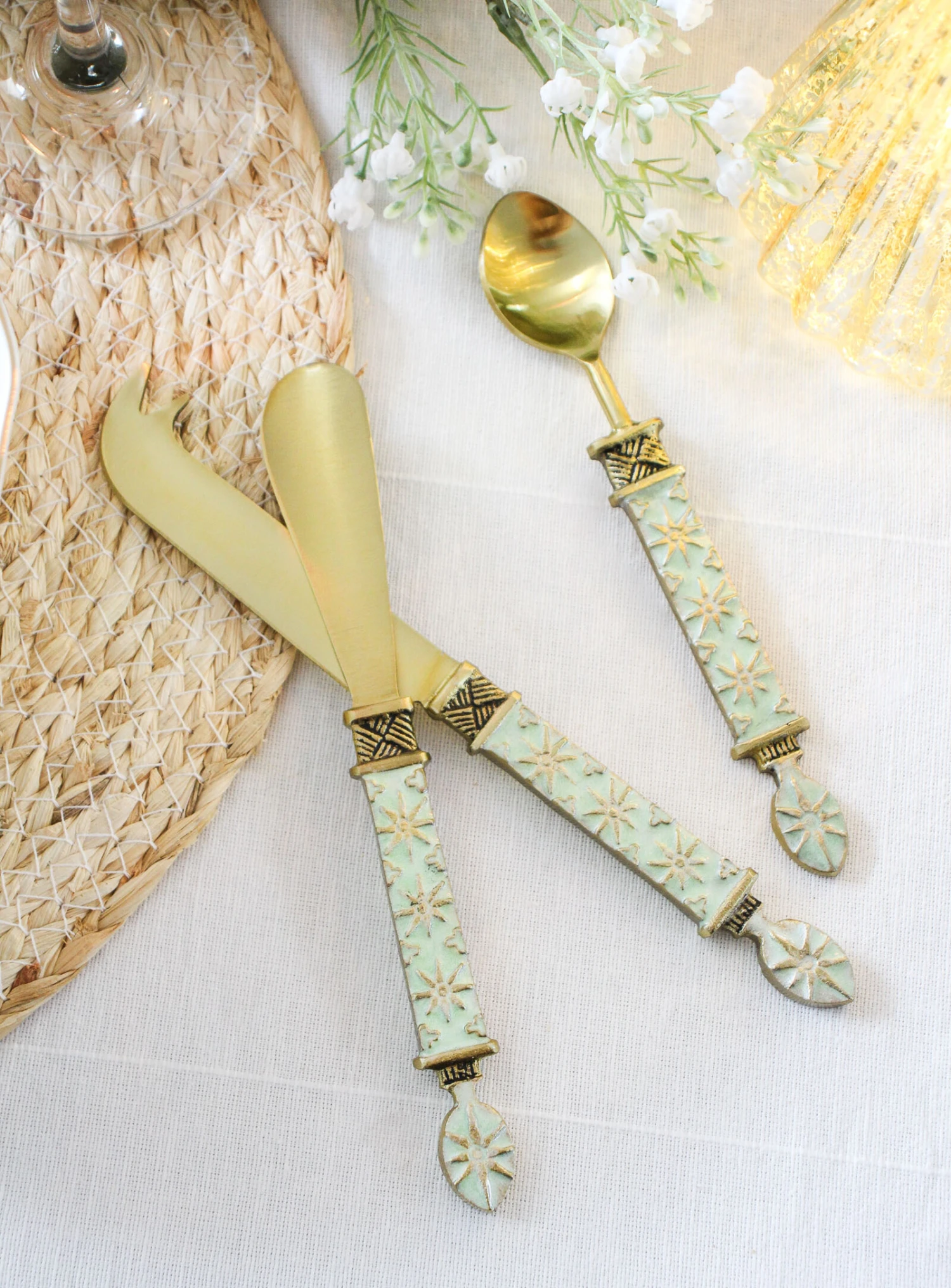 The teaspoon pharaoh delights you with its textured pattern on the handle that is in dull icy blue and white and helps bring to fore the details which makes this tea spoon such a fine pick for your own collection. Use ity for your tae time or to spoon in some dessert-whatever might be your reason for using, it’s surely going to garner attention for its vintage good looks and fine metal finish.