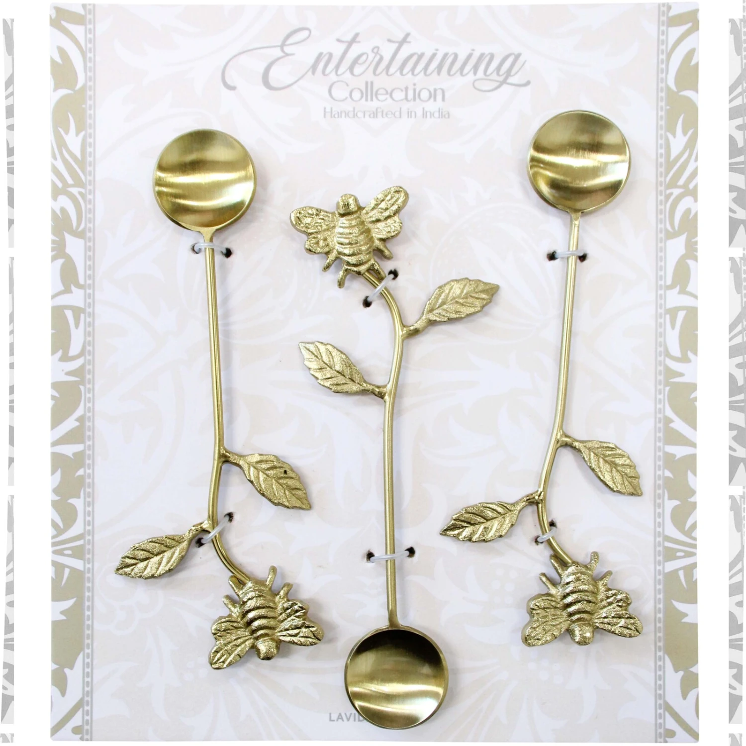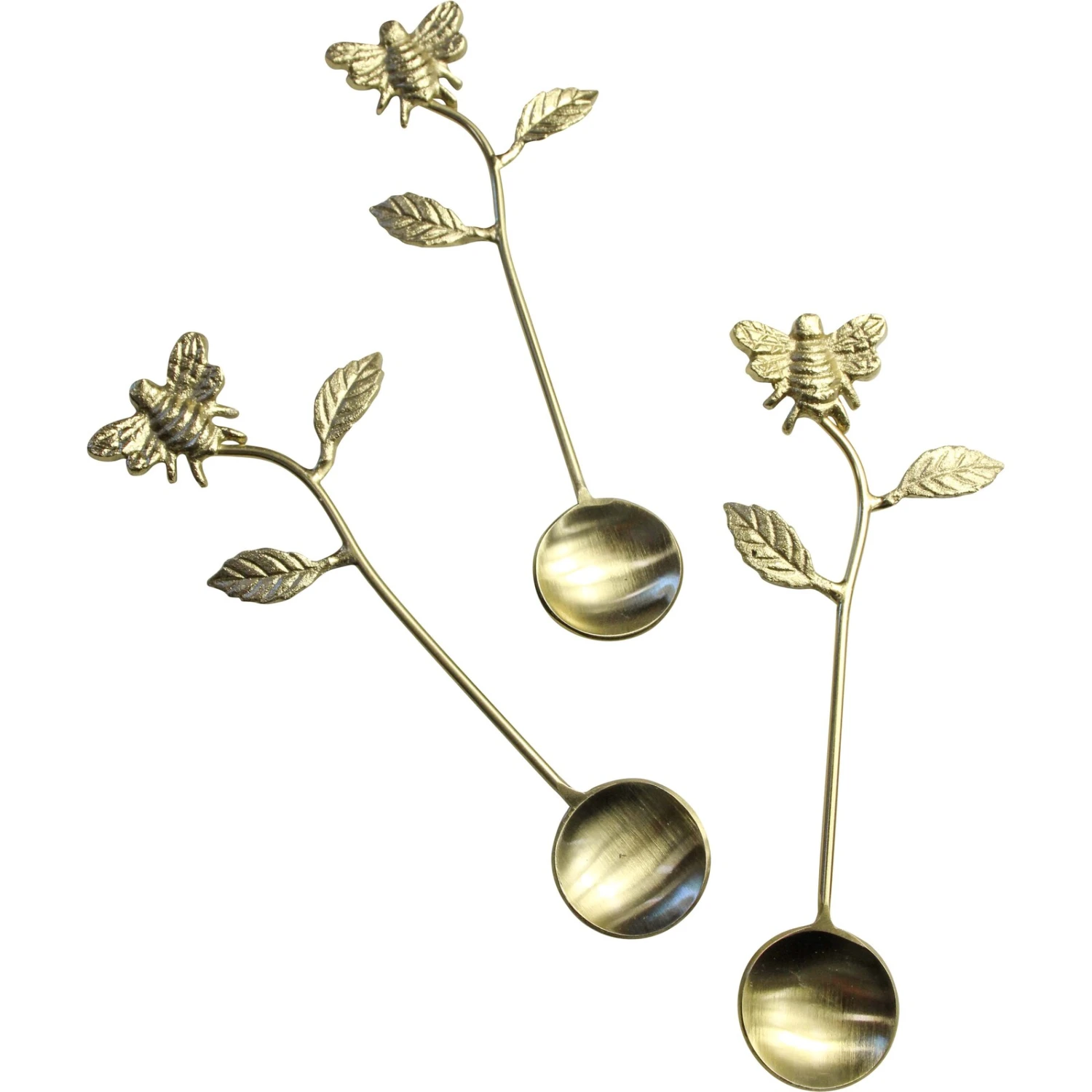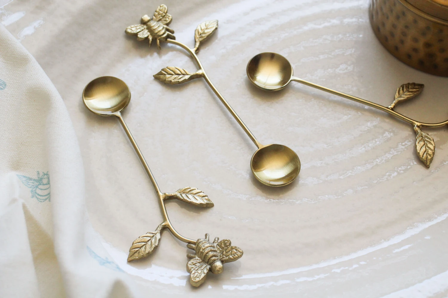 Crafted from high-quality brass, these teaspoons boast a bright, radiant golden hue that adds a touch of luxury to any occasion. What truly sets these teaspoons apart is their captivating design. The handles are adorned with an enchanting mix of delicate flowers and graceful bees, meticulously etched to perfection.