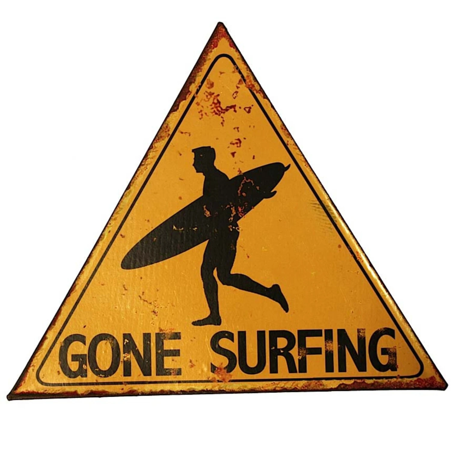 Capture the free spirit of the beach with the Tin Sign Gone Surfing, an eye-catching triangular decor piece measuring 25x25x25 cm. Crafted from durable metal with a rustic, weathered yellow and black finish, this sign adds a playful touch to any setting, hinting at laid-back surf culture. Perfect for beach-themed shops, surf stores, or any retail space looking to infuse a bit of coastal charm, this sign is sure to draw attention and resonate with those who love riding the waves.