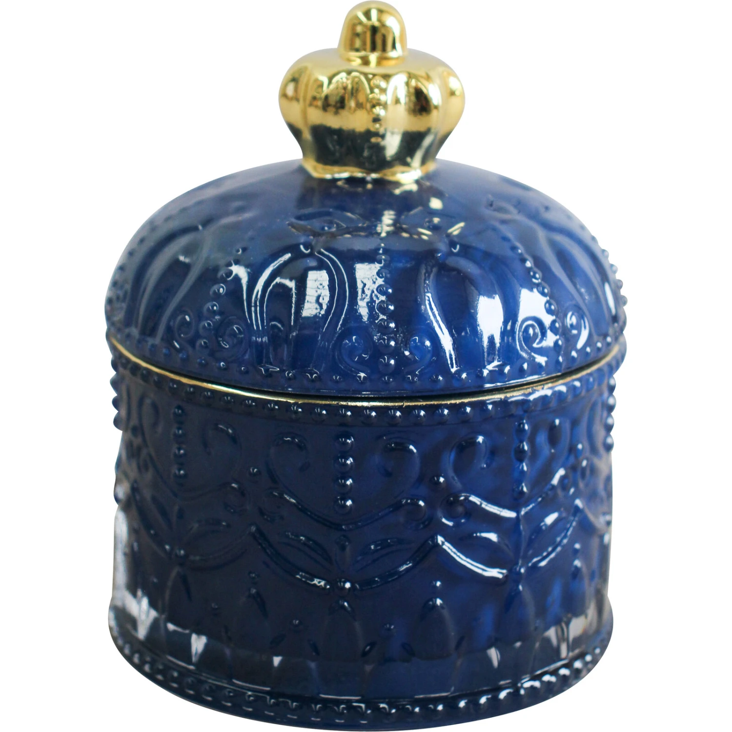 The Trinket Crown Indigo showcases an unconventionally stylish visual appeal as it is made in an exquisite design which would reflect the personality and preference of savvy clientele who would love to buy it. Apart from the lavishly hued indigo colour, the introduction of the motif of a crown as part of the lid gives it a majestic decorative appeal which many would love to incorporate into their working and living spaces.